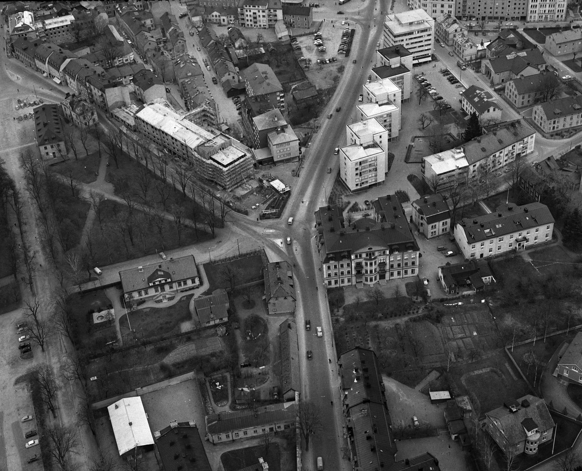 Till vänster ser man Gamla domprostgården, i mitten ser man Rally hotell under uppförande.