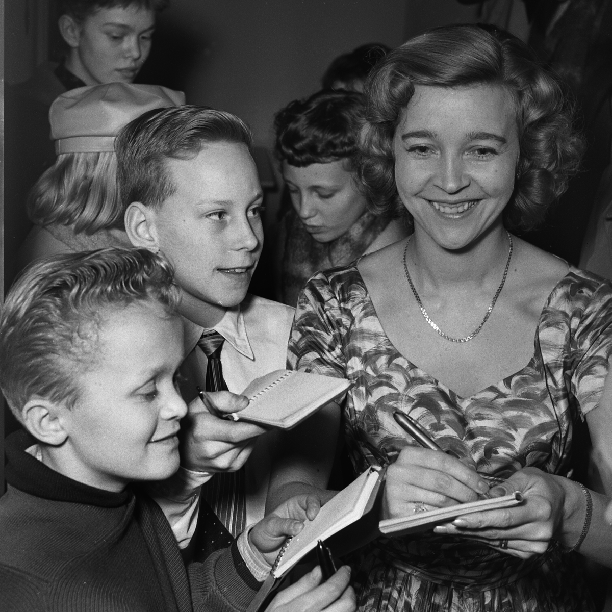 Alice Babs uppträder i Sporthallen i februari 1956. Östgötens rubrik var Babs-Succé.