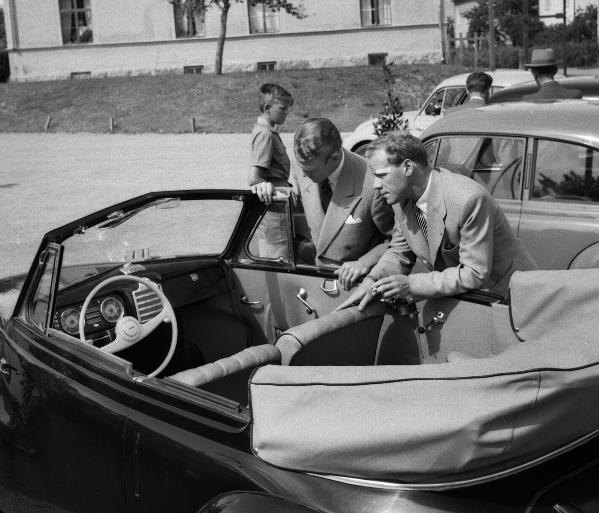 Sommaren 1953 öppnade Philipssons i Linköping som första bilaffär i landet en permanent utomhusutställning. På bilden demonstrerar Philipssons chef Tage Mårtensson (TH) en DKW cabriolet för försäljningsinspektör Per Sundin.