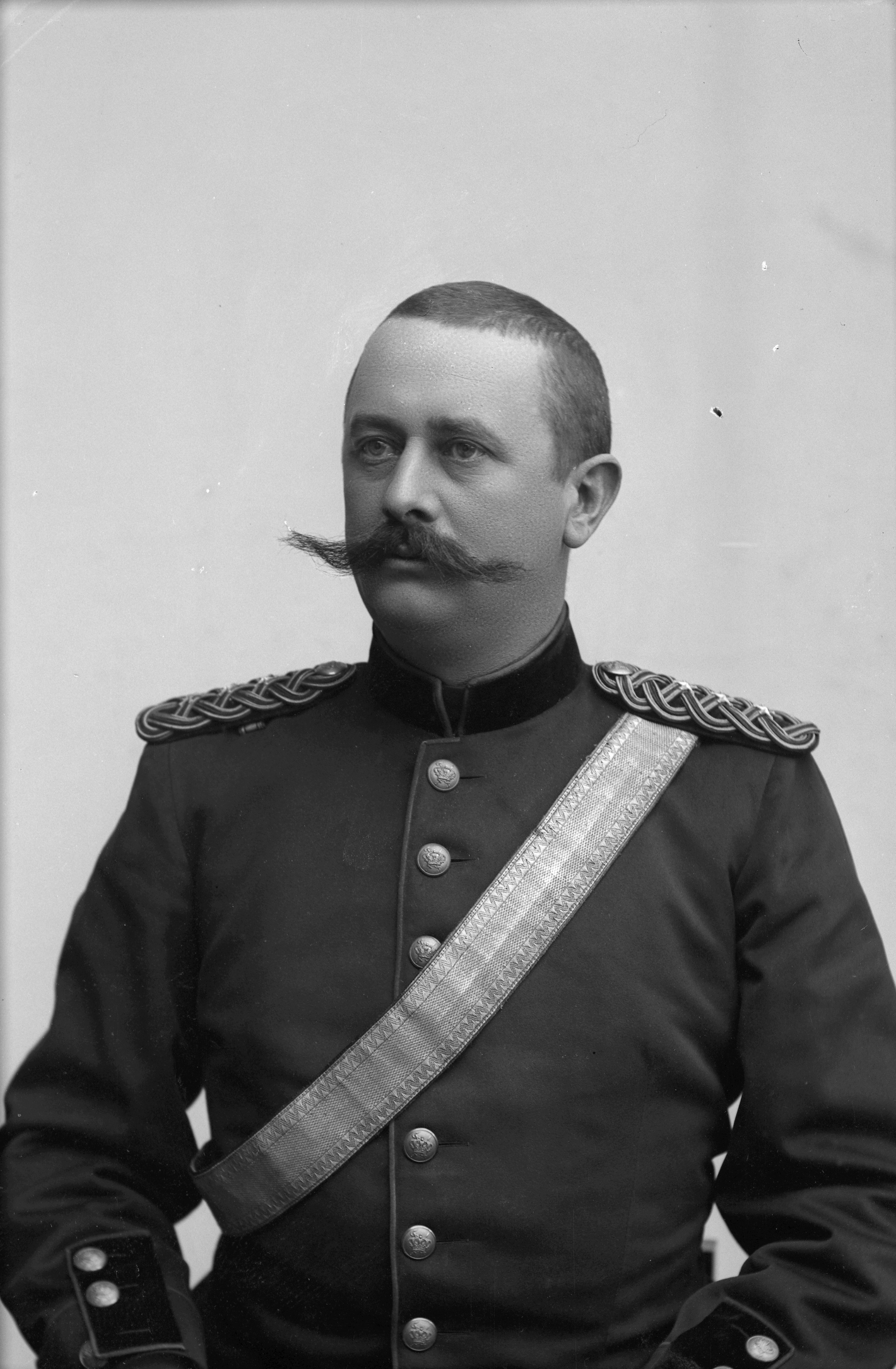 Porträtt i halvfigur av regementsläkare Johan Magnus Bohmansson, iklädd militäruniform.