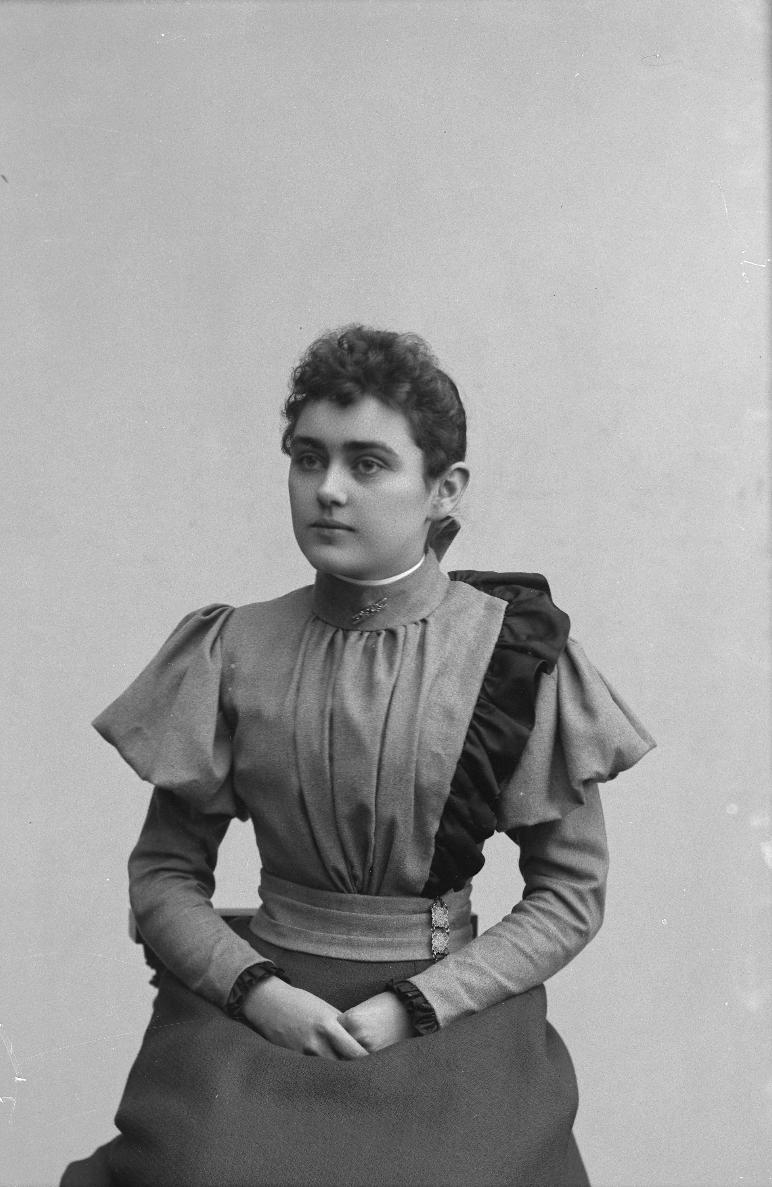 Beskrivning: Porträtt i halvfigur av fröken Anderberg.