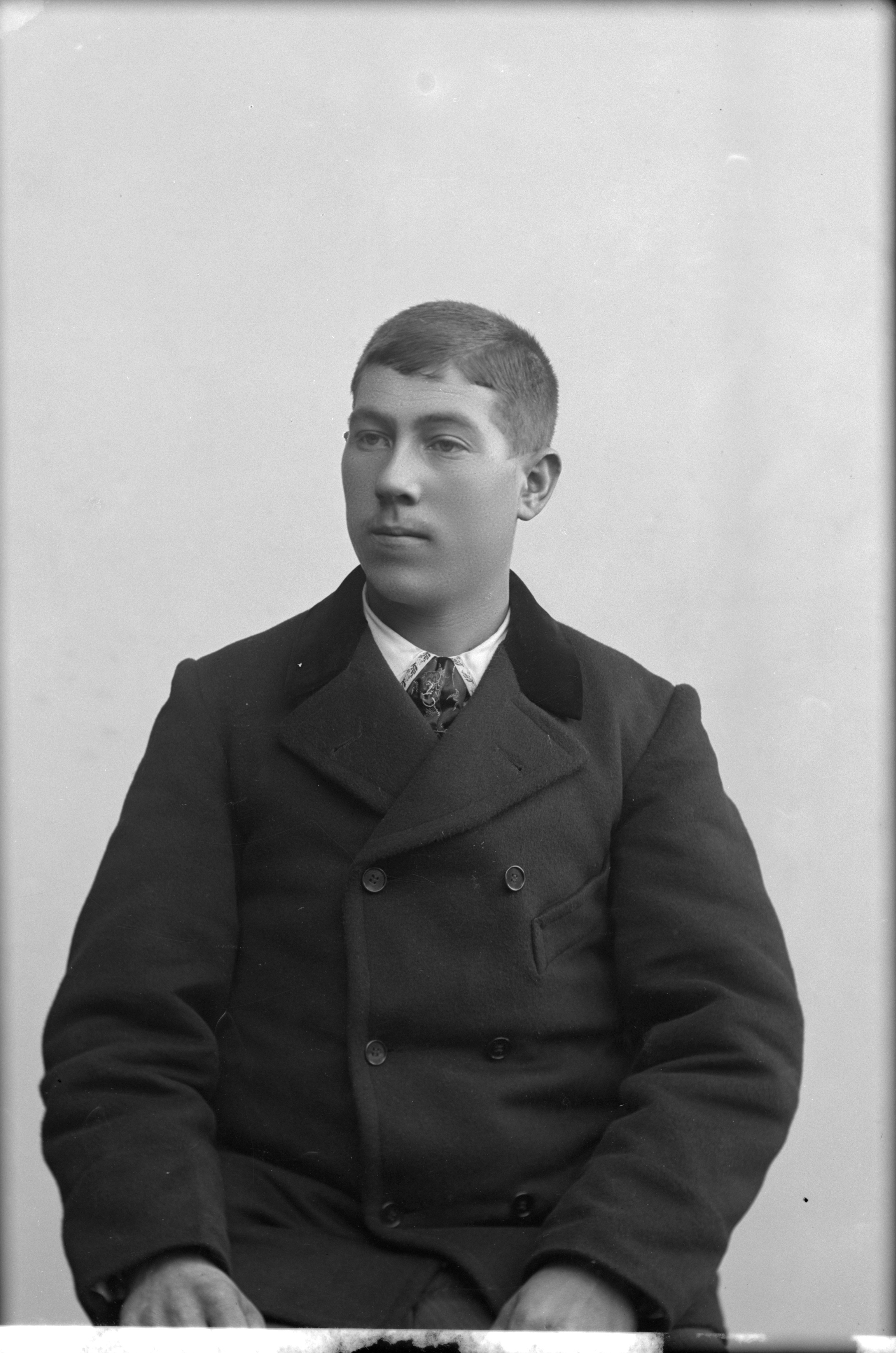 Beskrivning: Porträtt i halvfigur av sjömannen J. Grönlund.