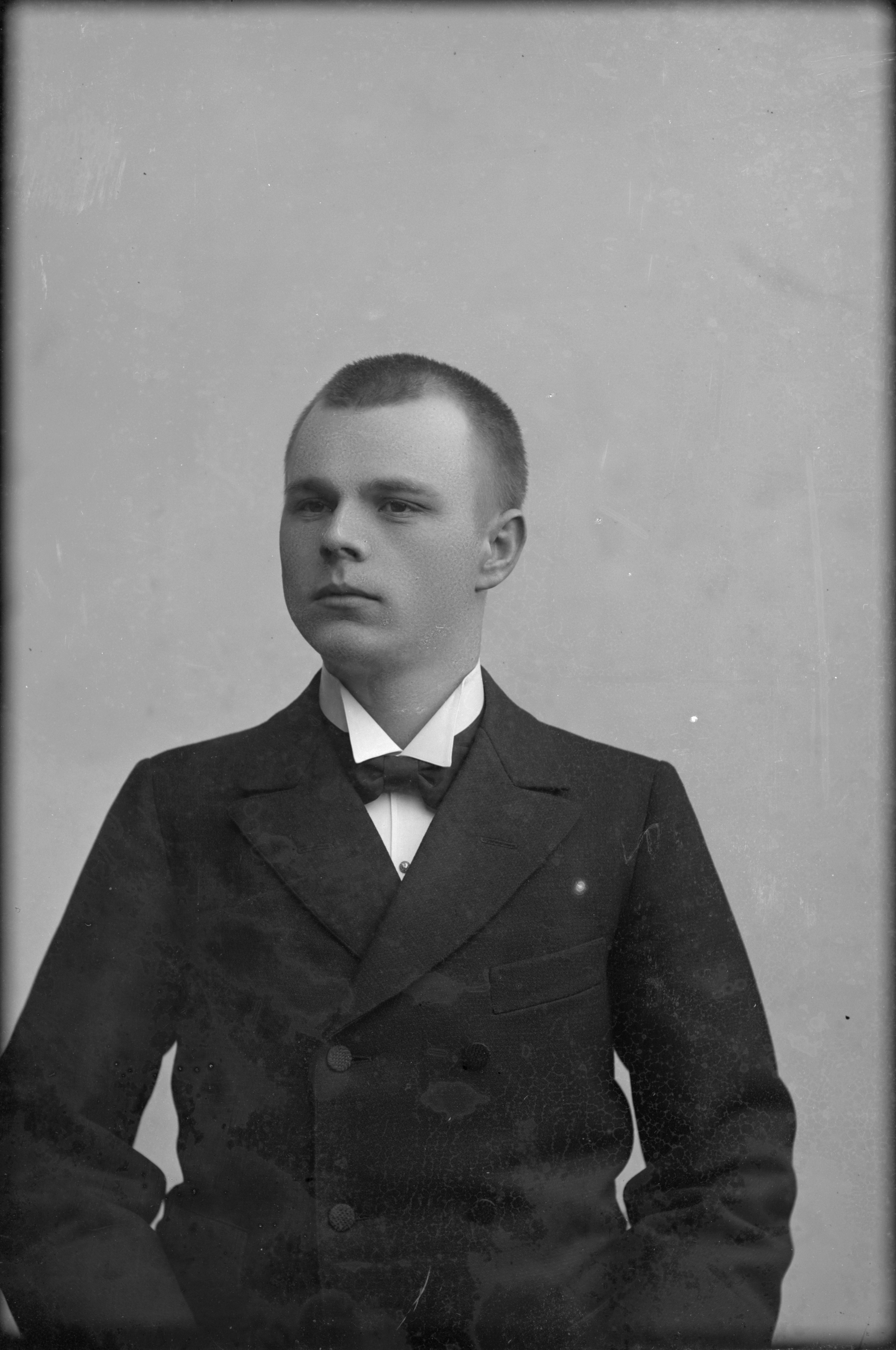 Beskrivning: Porträtt i halvfigur av Otto Andersson vid Gumaelius Annonsbyrå.