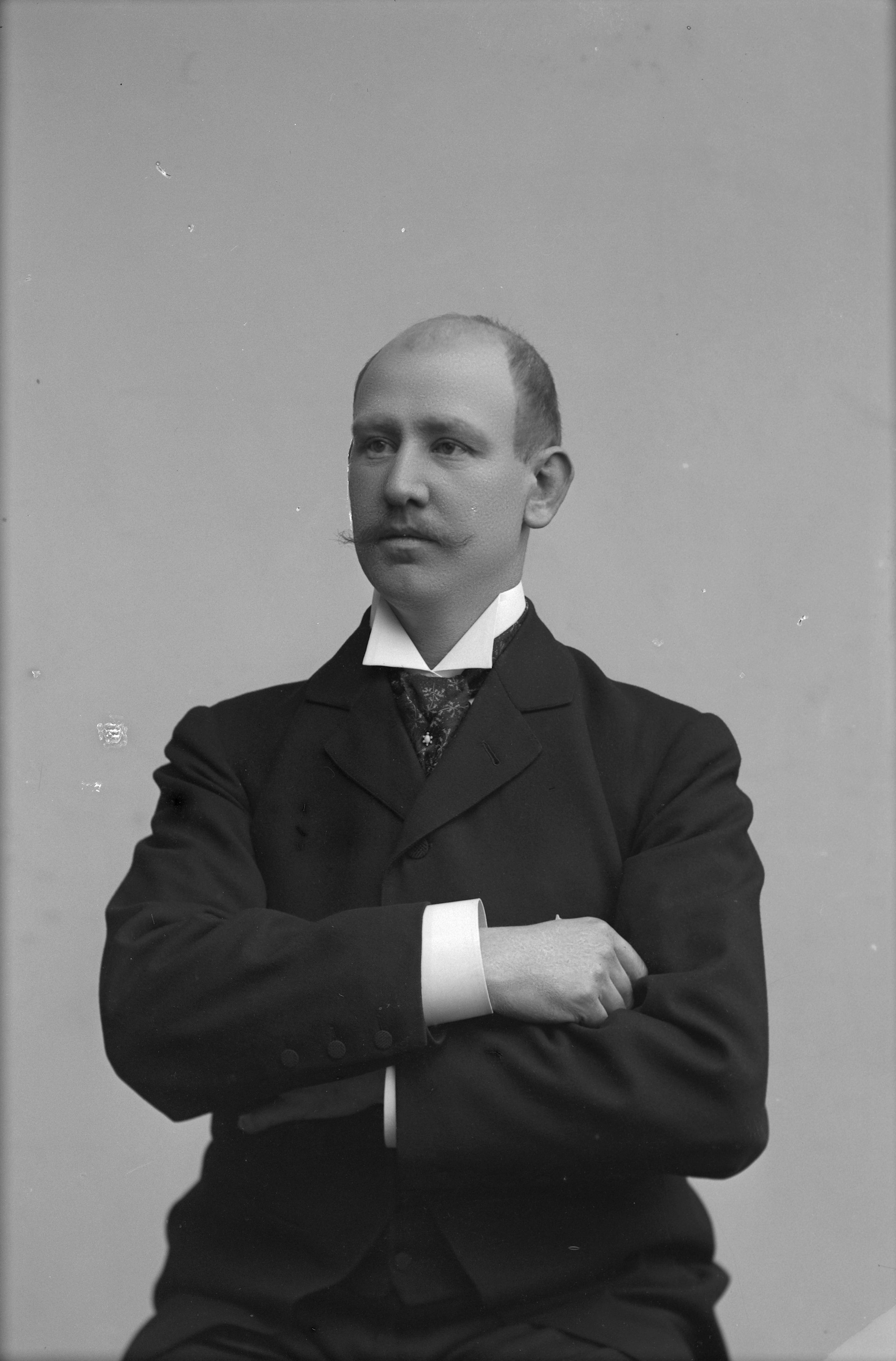 Porträtt i halvfigur av Frans Weiland, hållande armarna i kors.