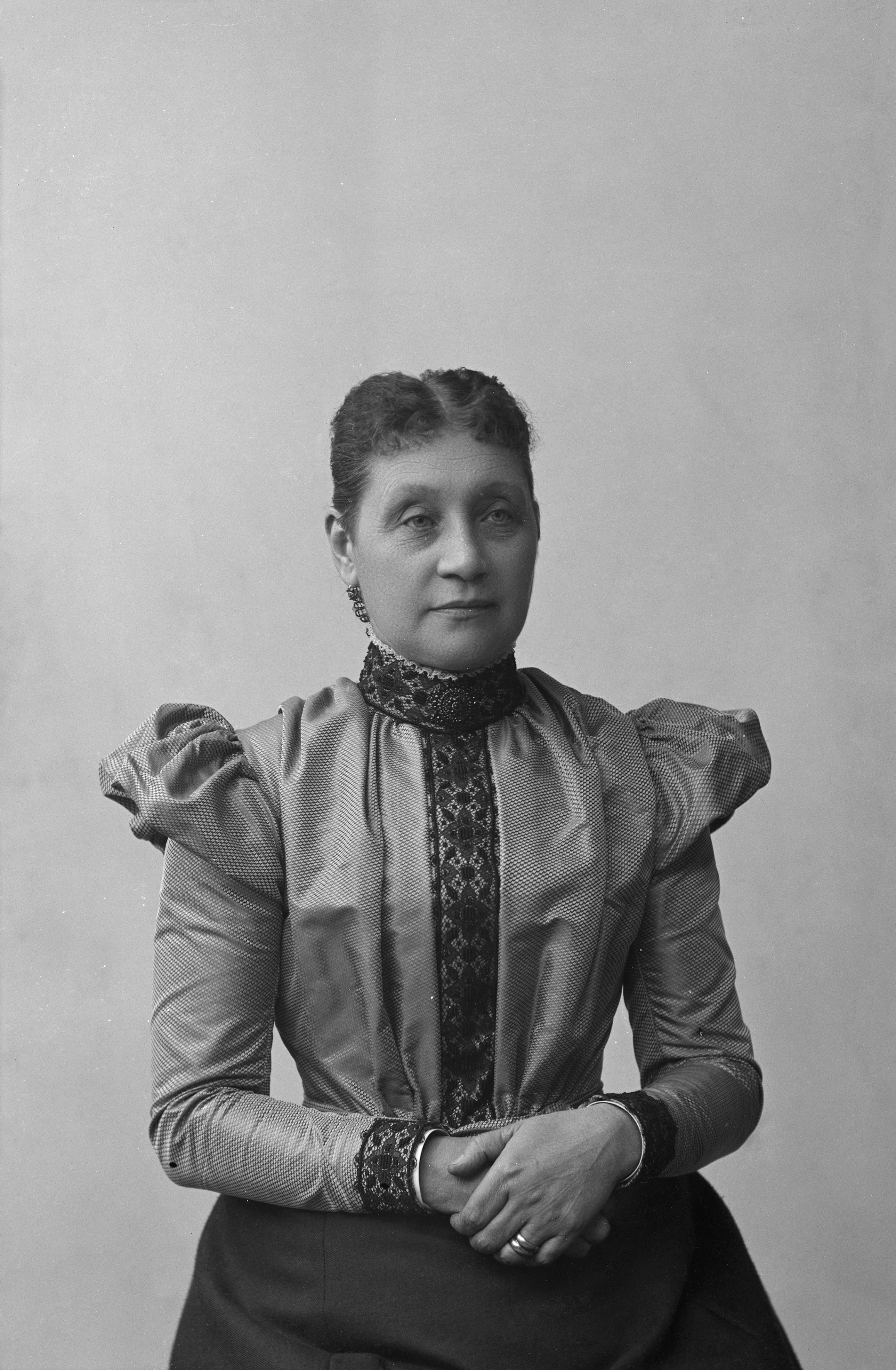 Porträtt i halvfigur av Sophie Nordstrand, född Ahlstedt.
