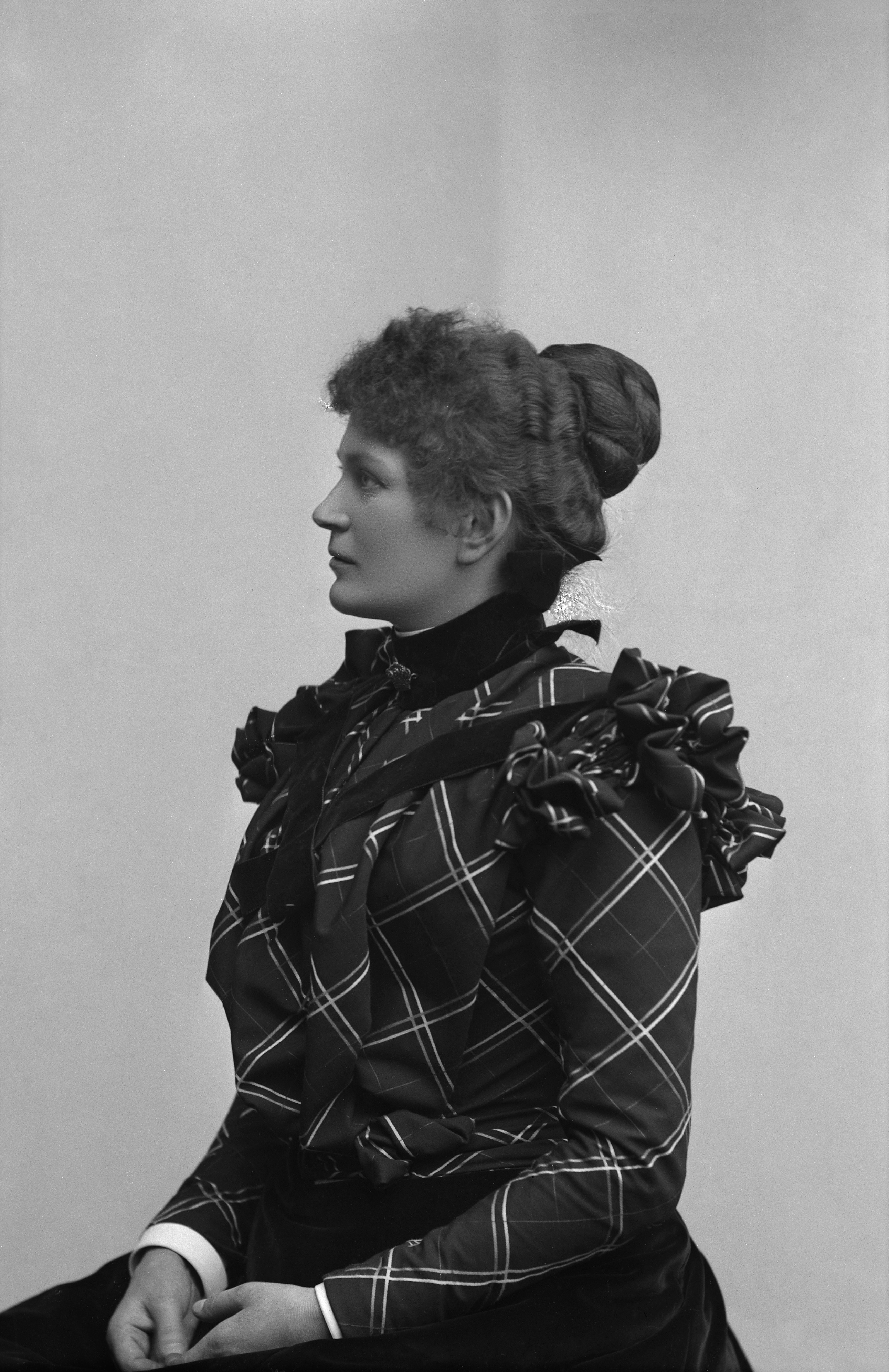 Porträtt i halvfigur, profil, av Lotten Hindberg.