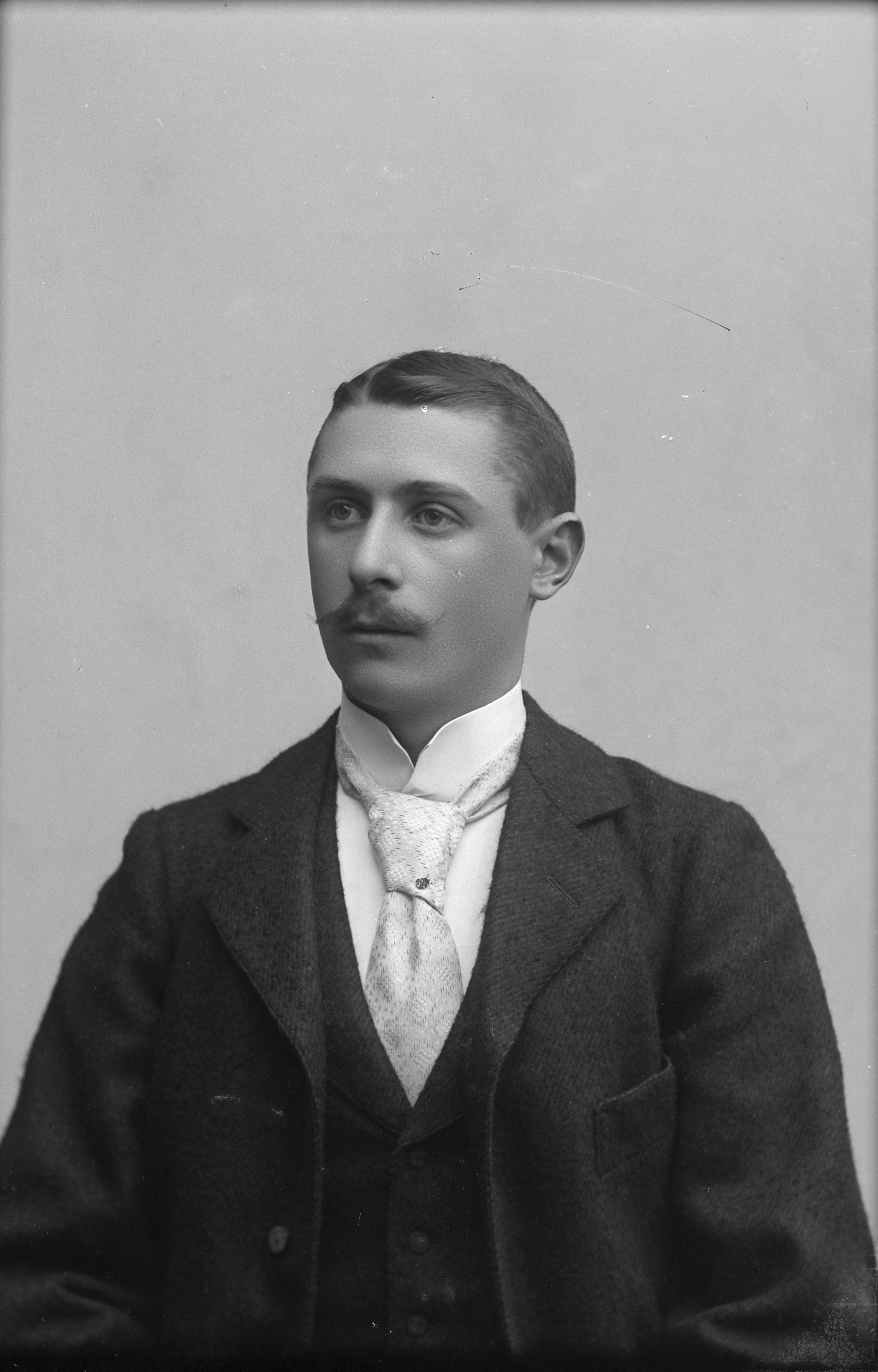 Beskrivning: Porträtt i halvfigur av J. Persson /oidentifierad man. [?]