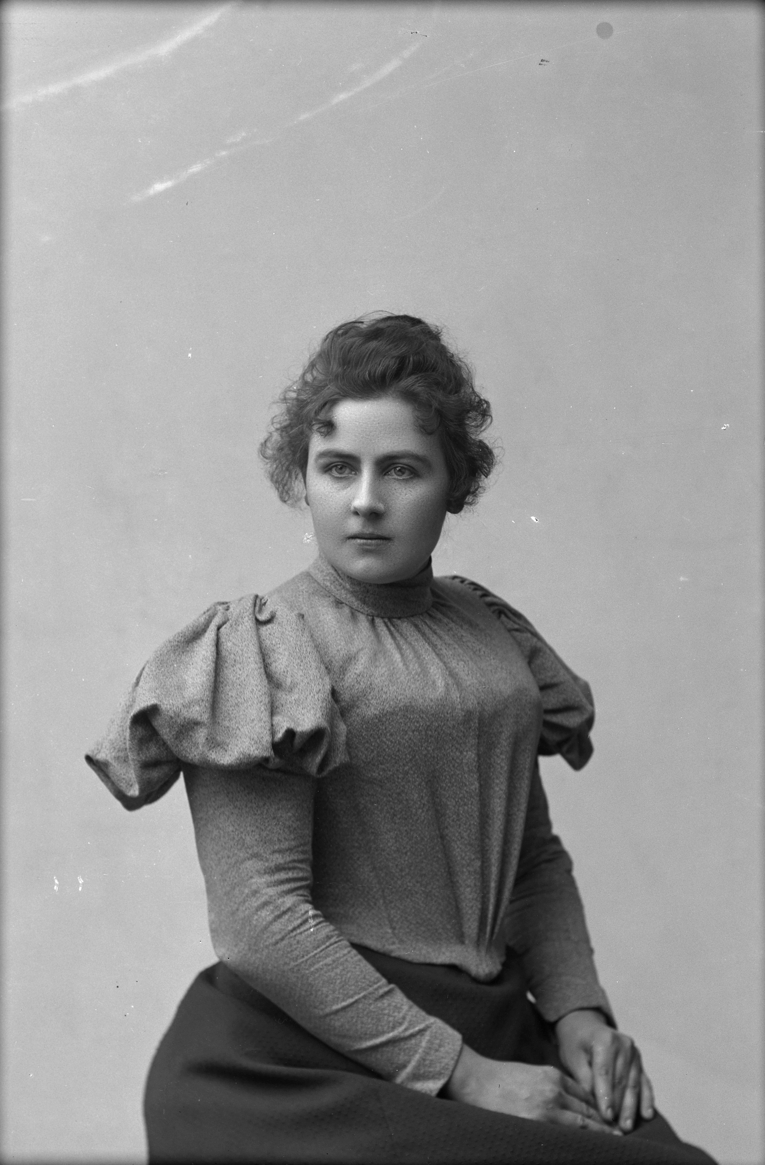 Beskrivning: Porträtt i halvfigur av fröken Kristensson.