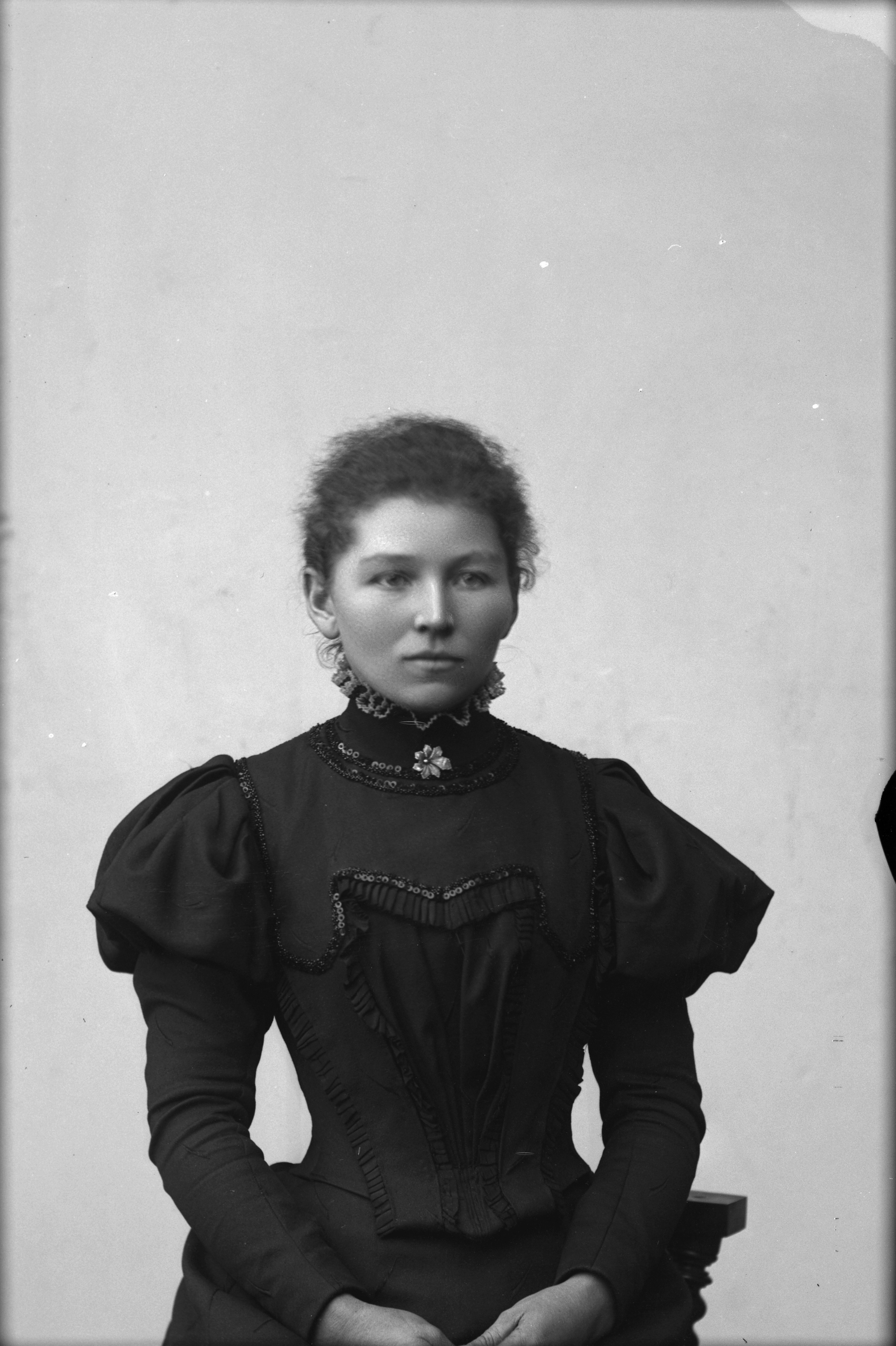 Beskrivning: Porträtt i halvfigur av Kristina Olsson.