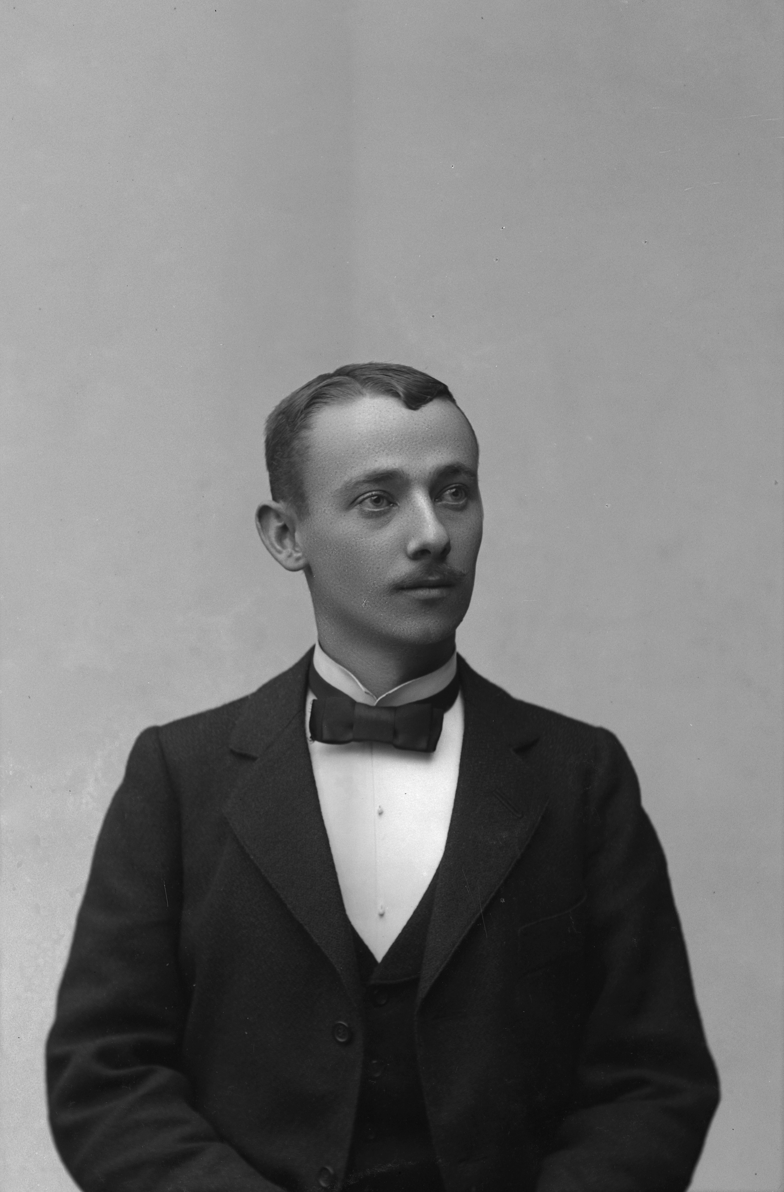 Beskrivning: Porträtt i halvfigur av skräddare Hans Ekelund.