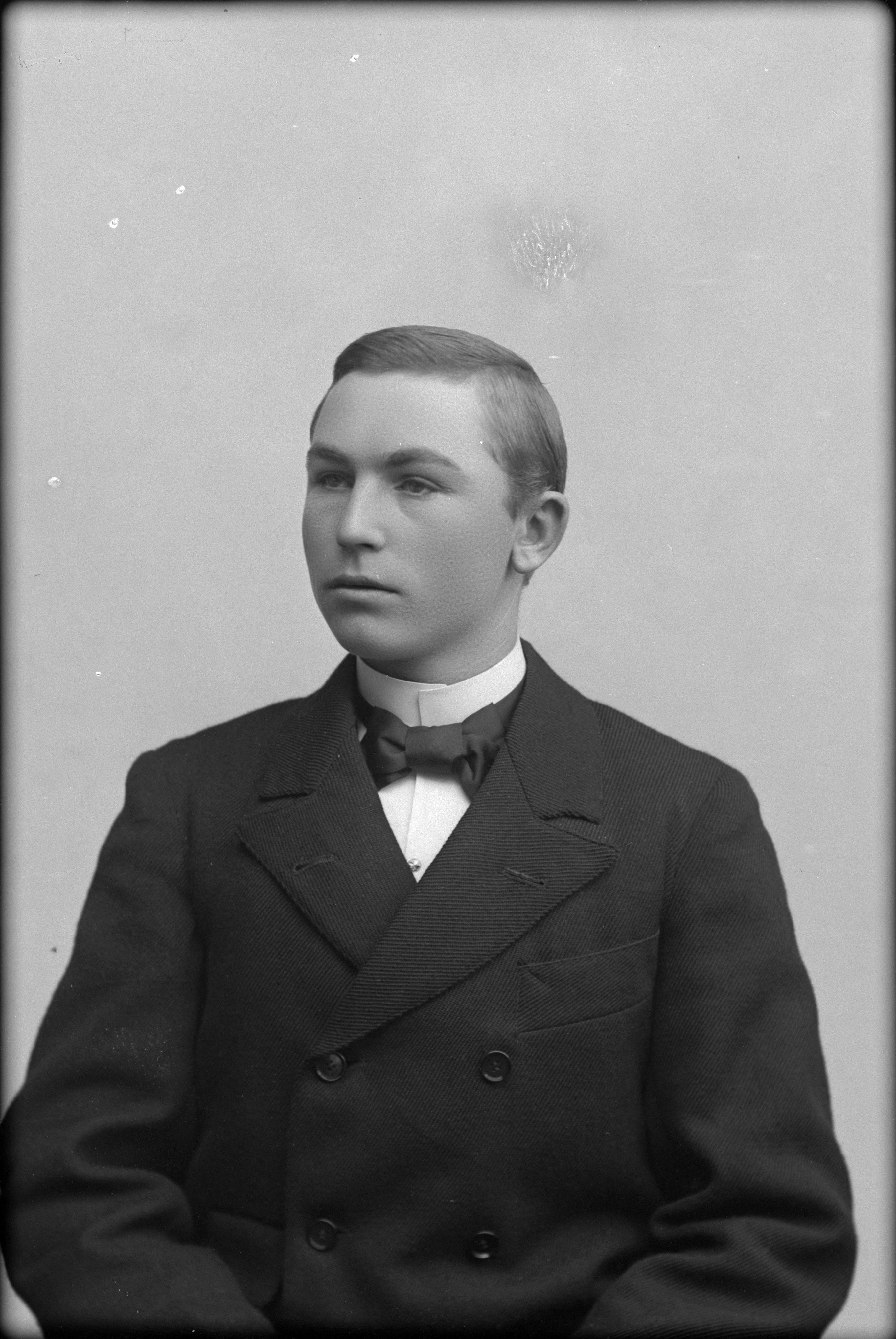 Porträtt i halvfigur av Oscar Gustafsson, student på Hvilan.