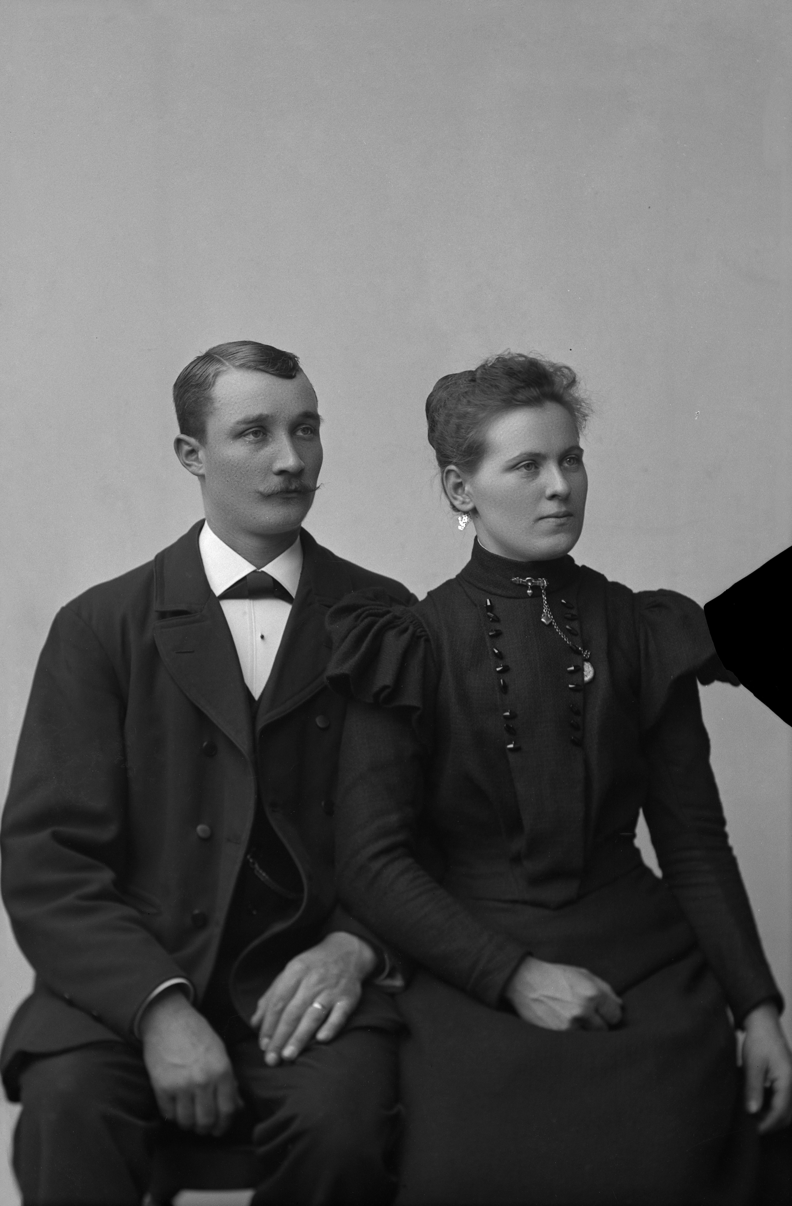 Beskrivning: Porträtt i helfigur av Georg Ahlström med fru.