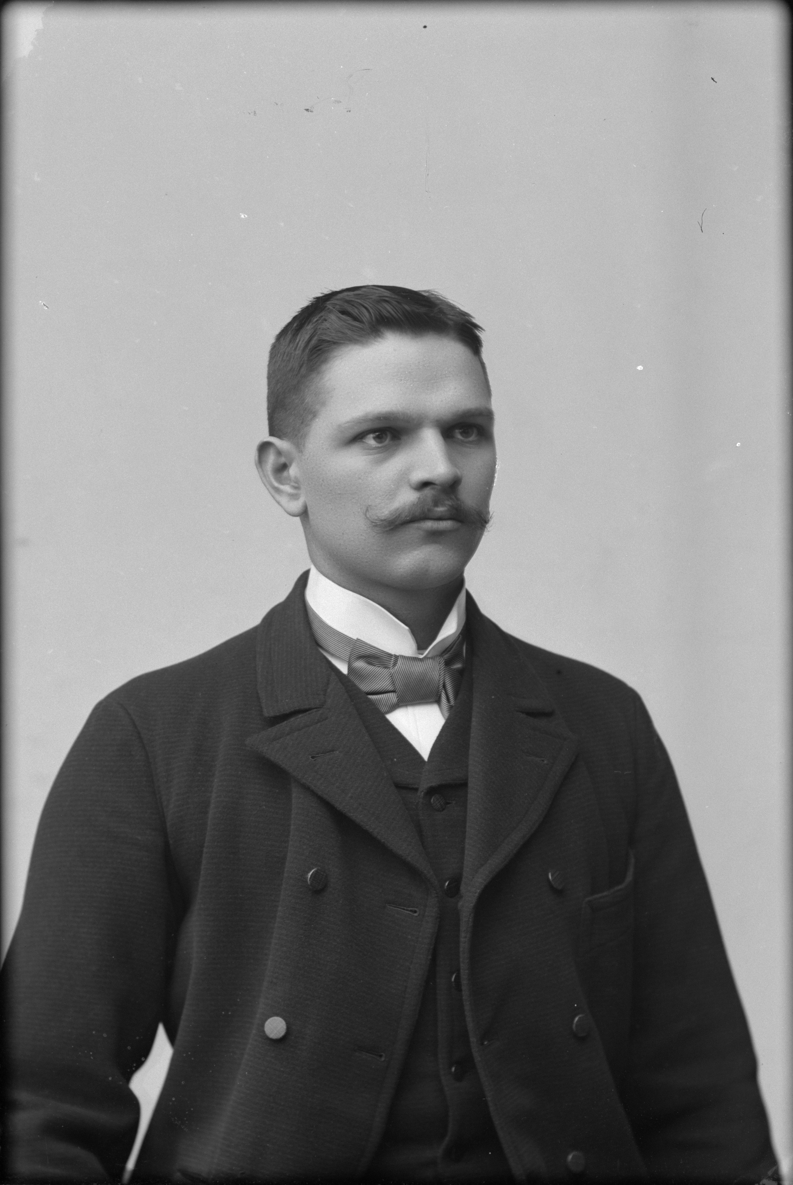 Porträtt i halvfigur av A. Samuelsson, student på Hvilan.