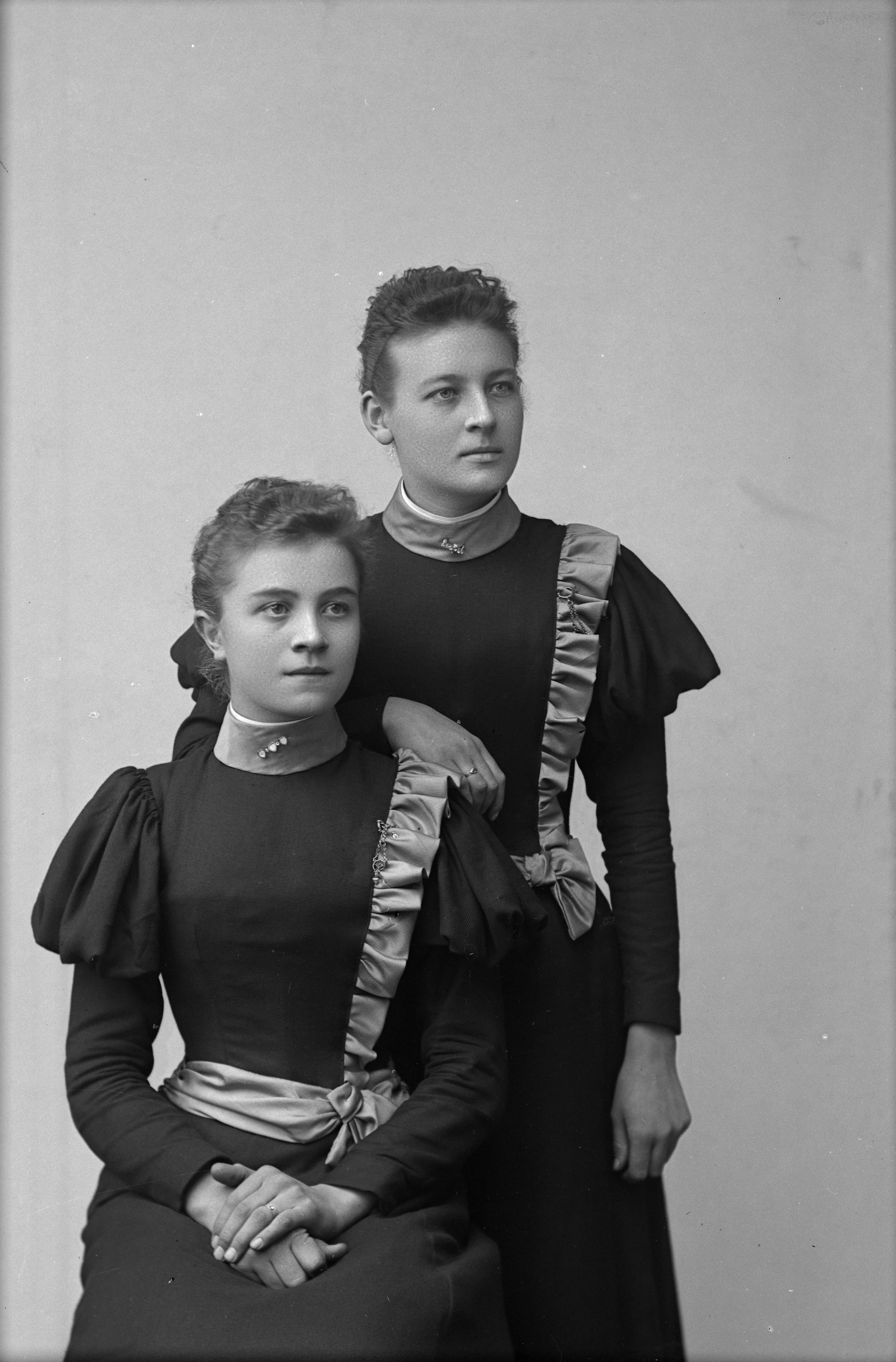 Porträtt i helfigur av Karolina Hansson och Mathilda Magnusson, sittande och stående.