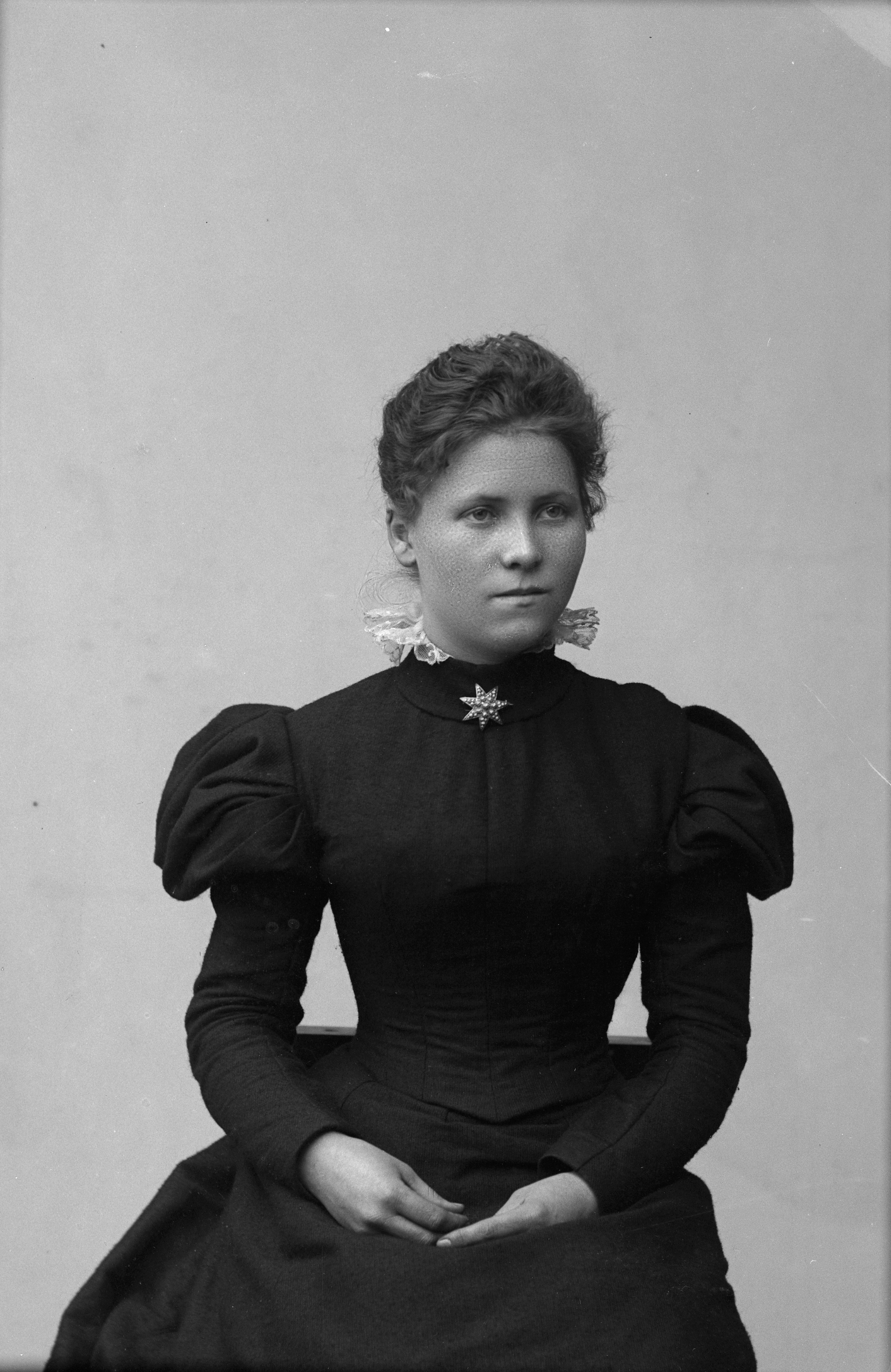 Beskrivning: Porträtt i halvfigur av Augusta Samuelsson.