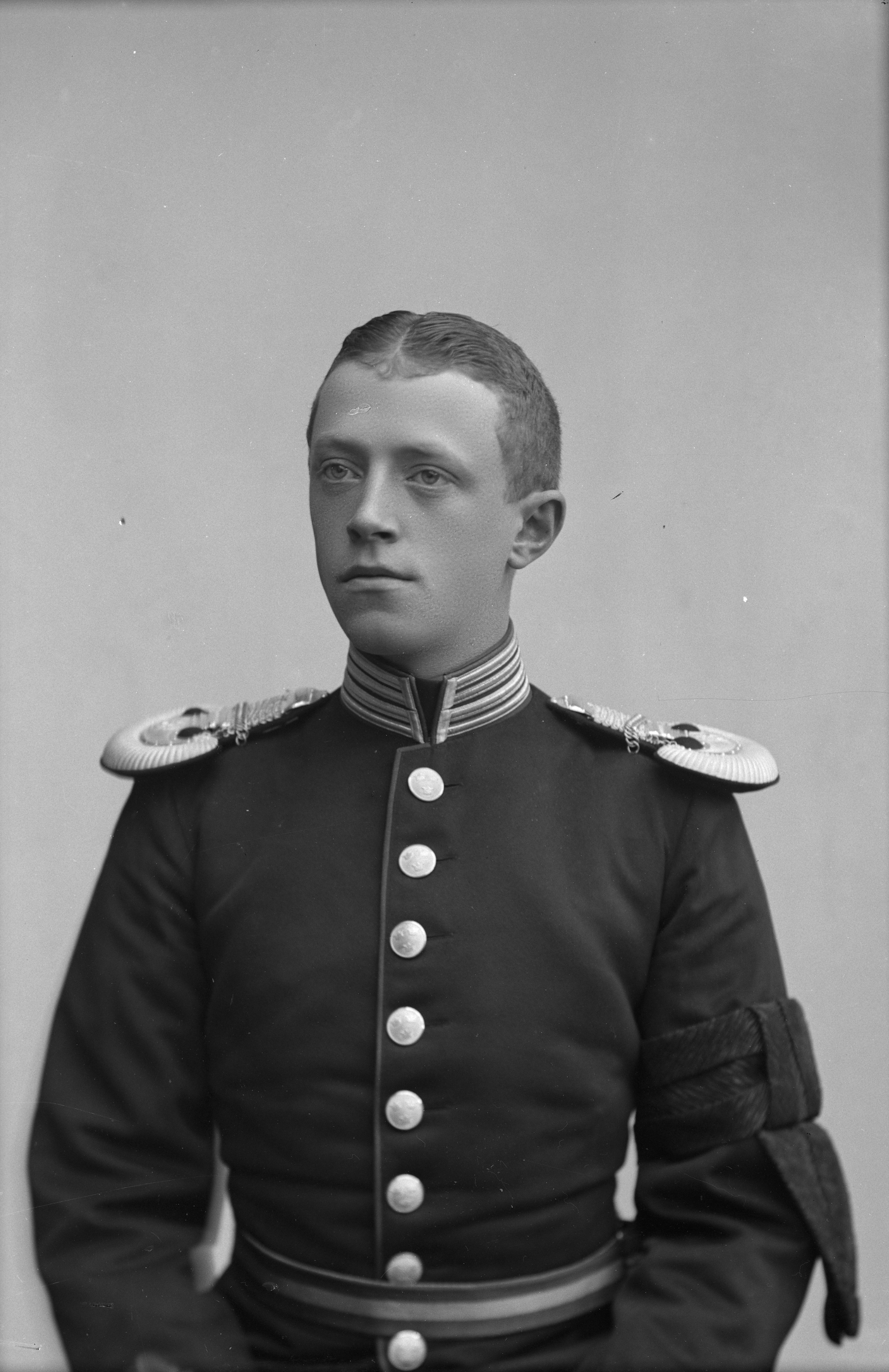 Porträtt i halvfigur av fanjunkare Elfgren, iklädd militäruniform.