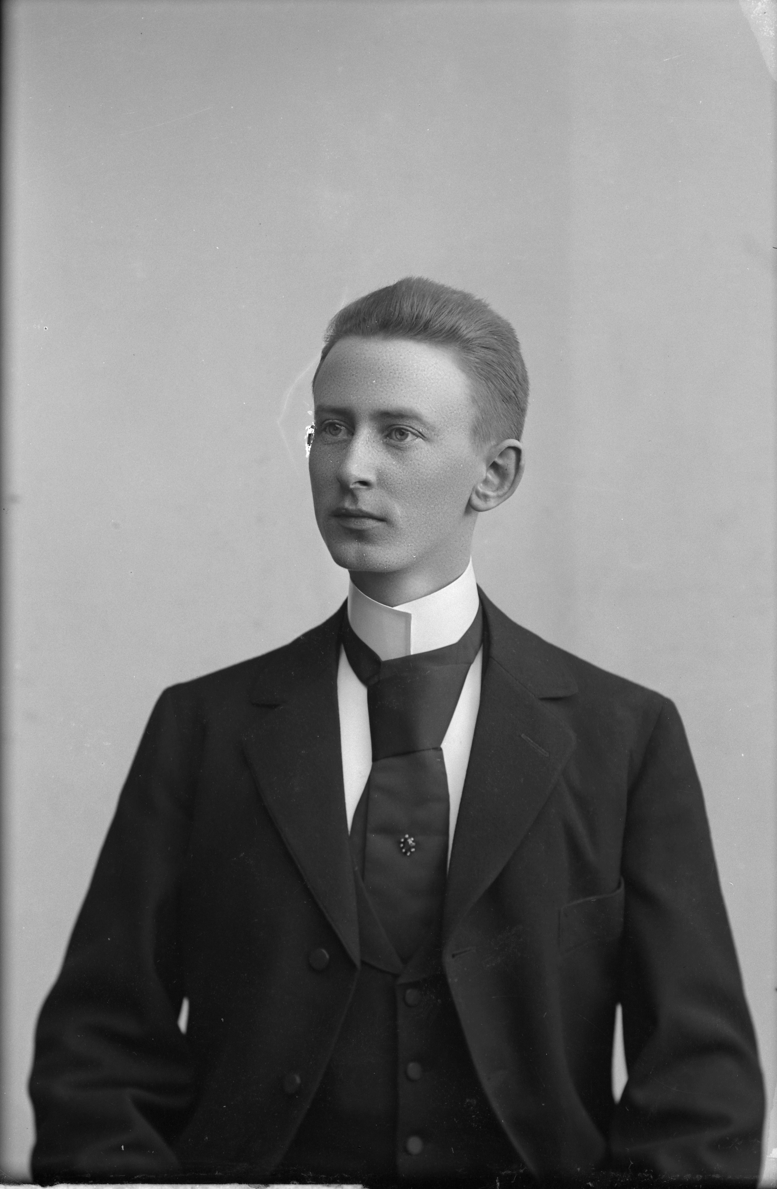 Beskrivning: Porträtt i halvfigur av bokhållare Otto Krook.