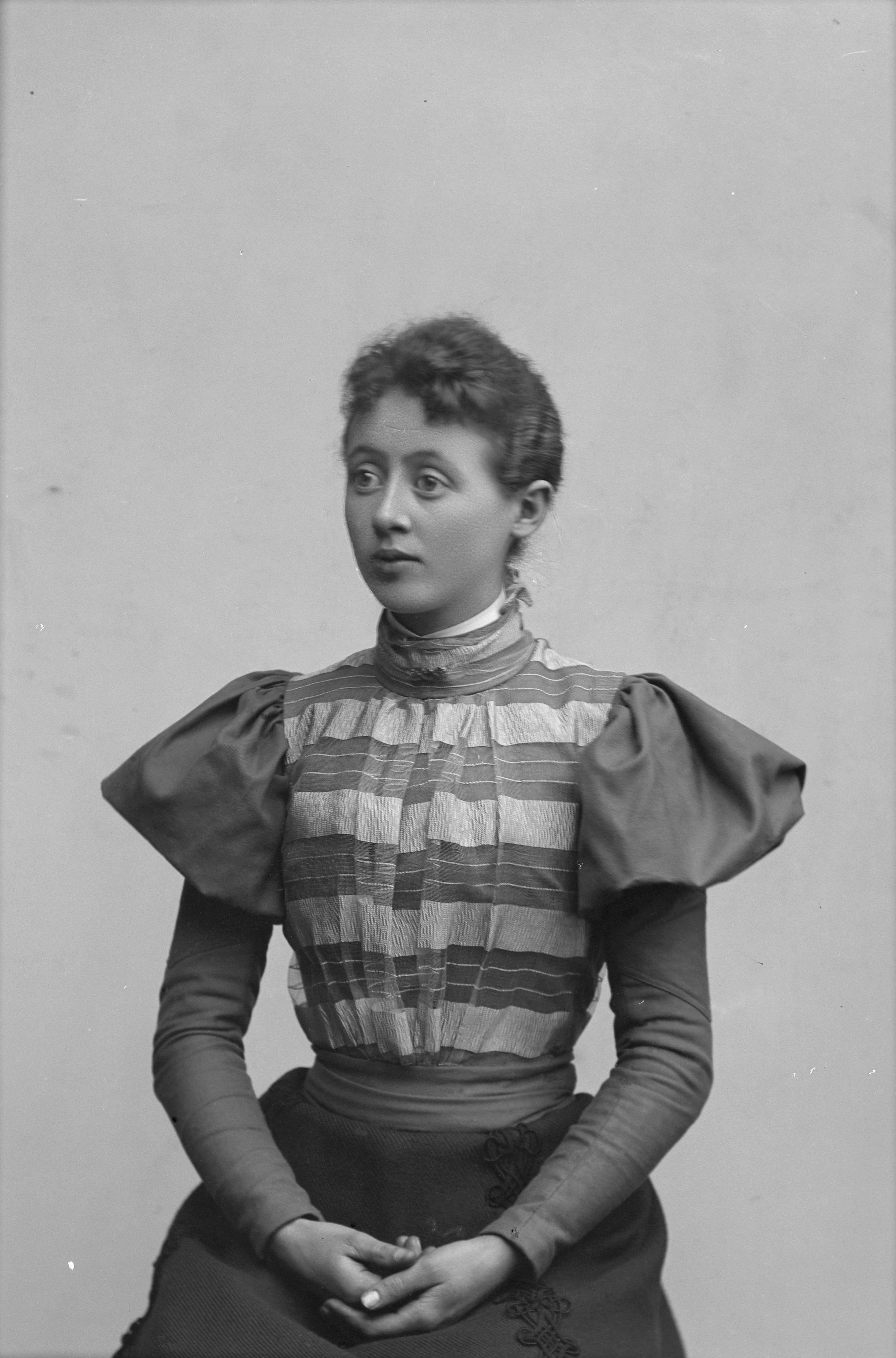 Beskrivning: Porträtt i halvfigur av Lina Andersson /Nevishög.