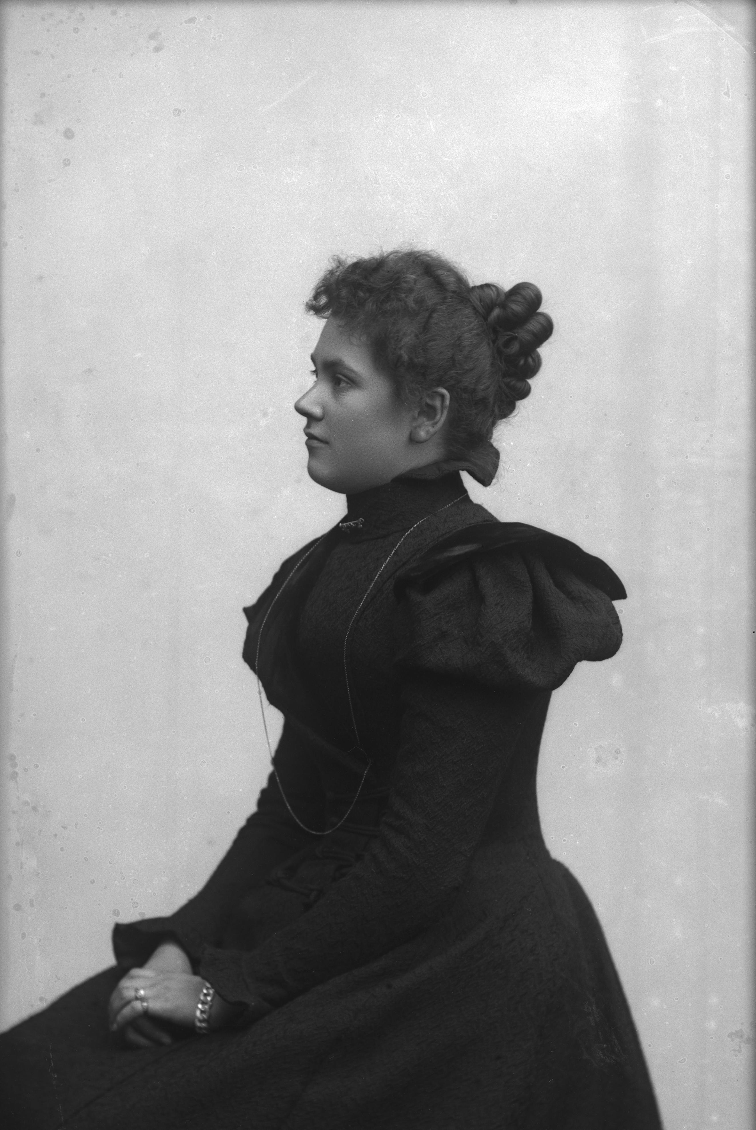Porträtt i halvfigur, profil, av fröken Jönsson.
