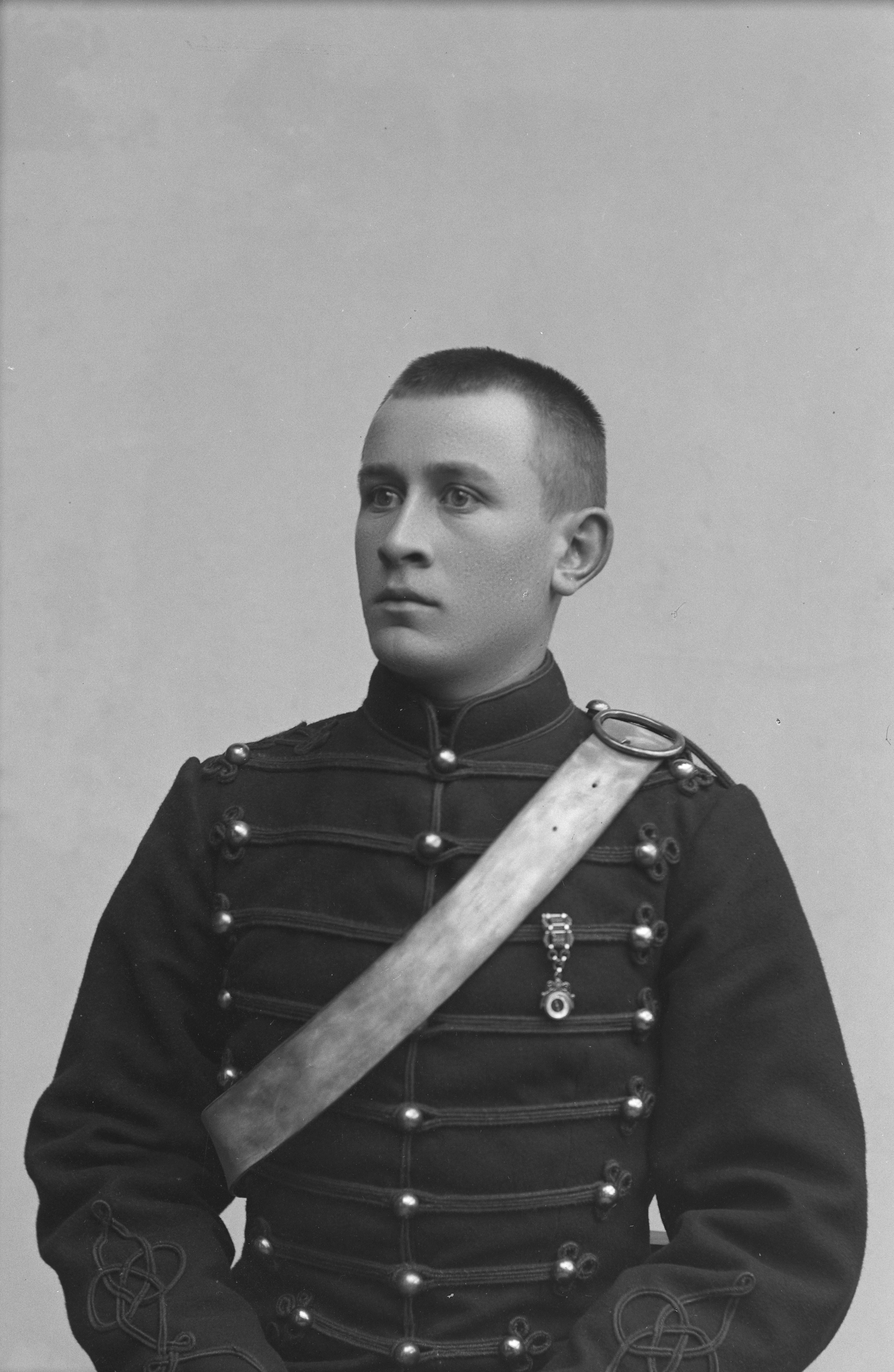 Porträtt i halvfigur av E. Lindvall, iklädd militäruniform.