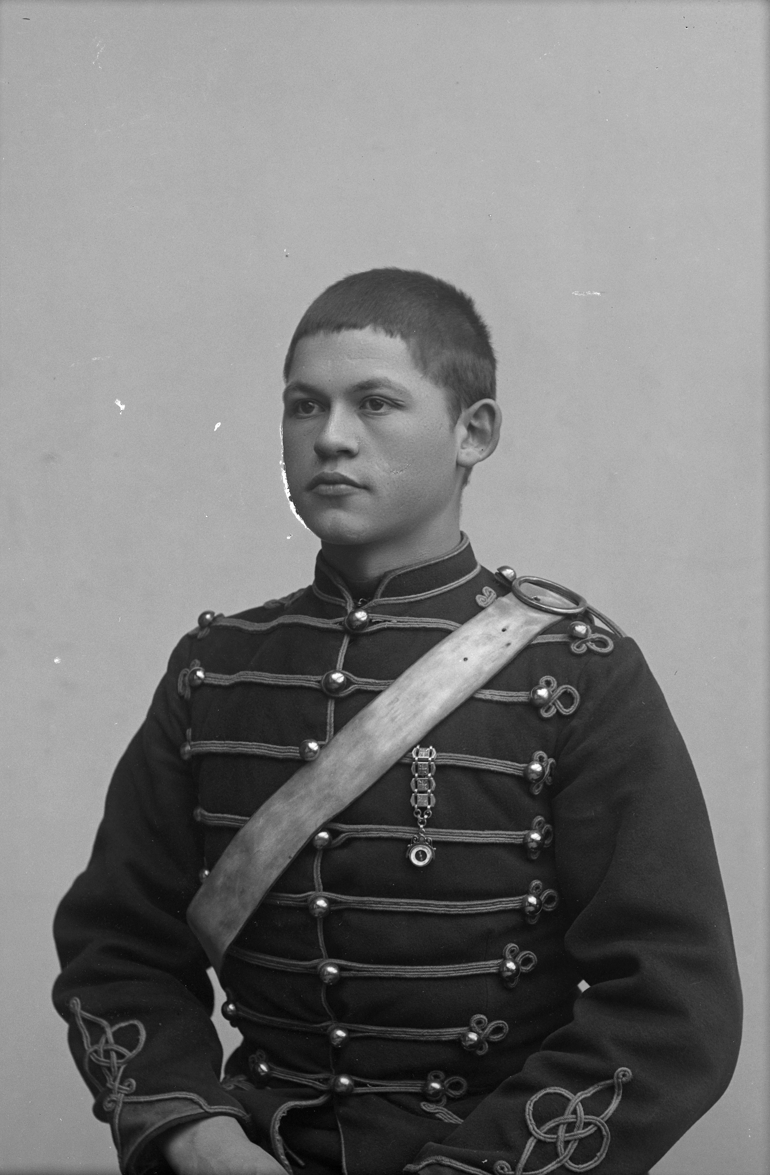 Porträtt i halvfigur av K. J. Sjölin, iklädd militäruniform.