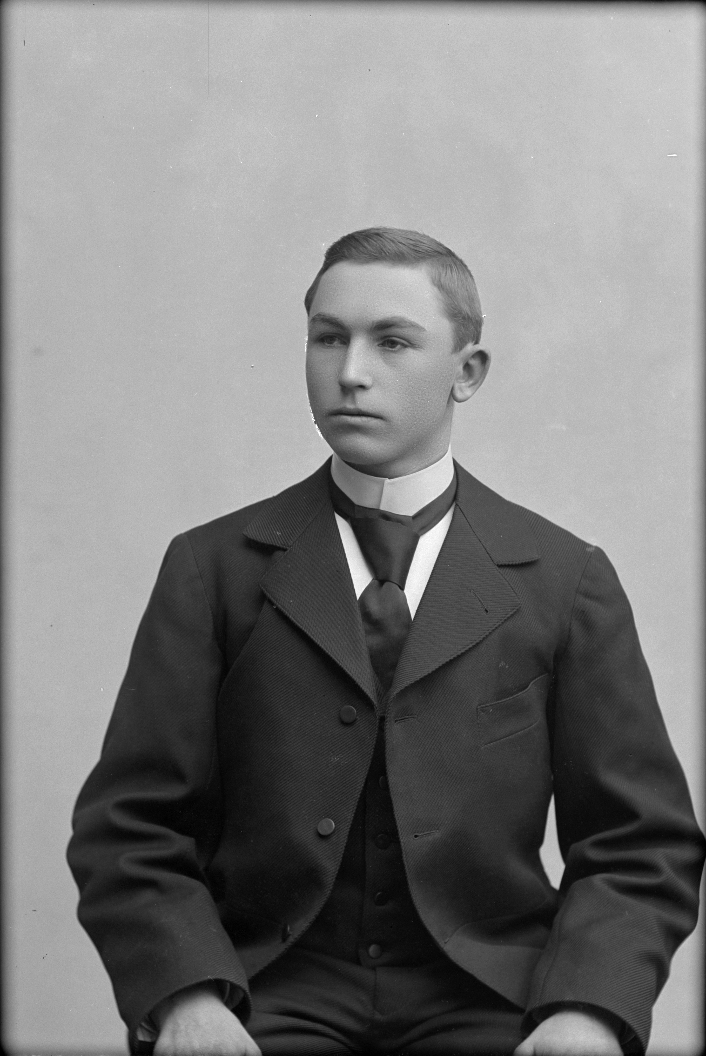 Porträtt i halvfigur av Oscar Gustafsson, student på Hvilan.