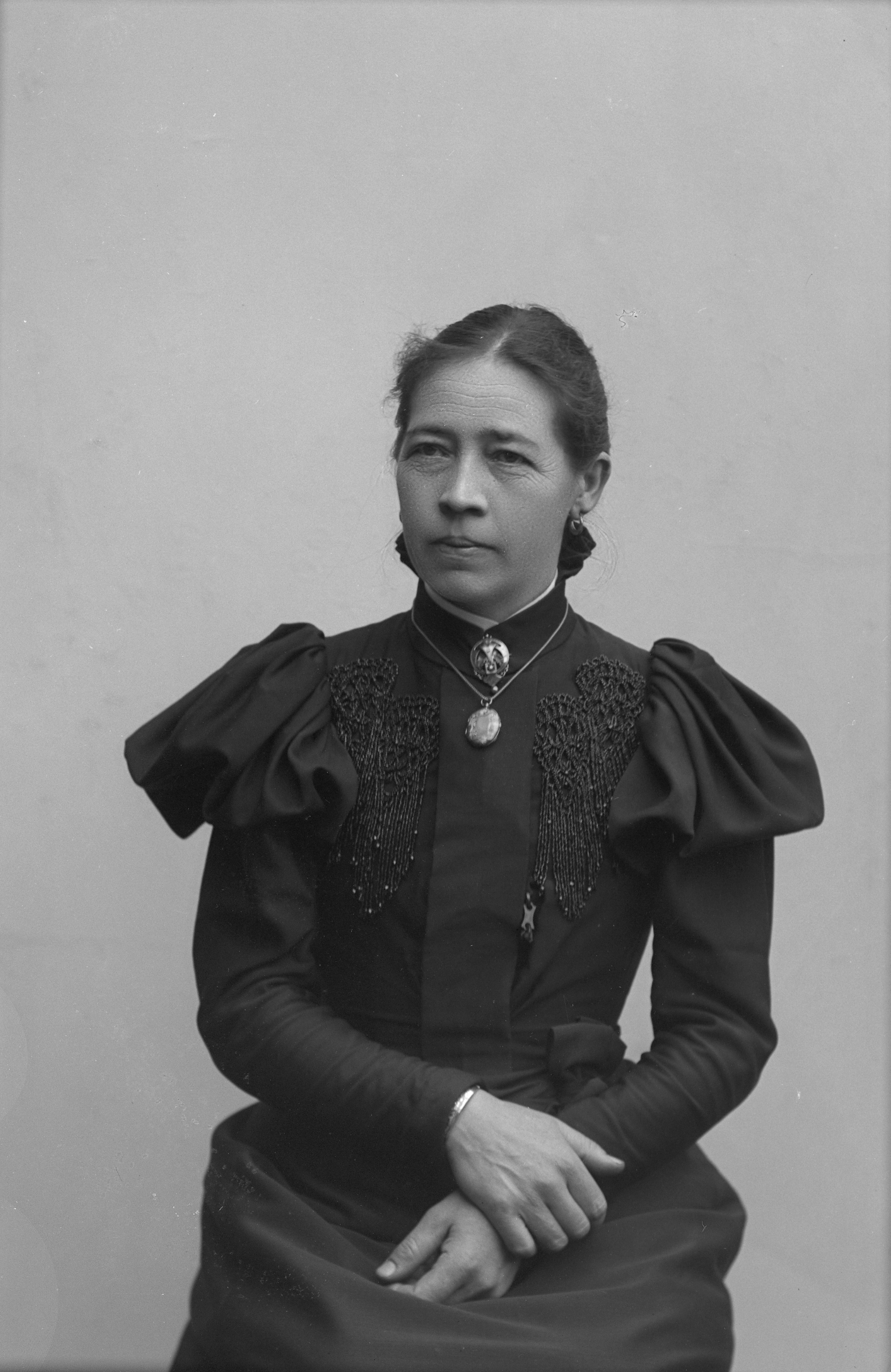 Beskrivning: Porträtt i halvfigur av fru Sylvan.