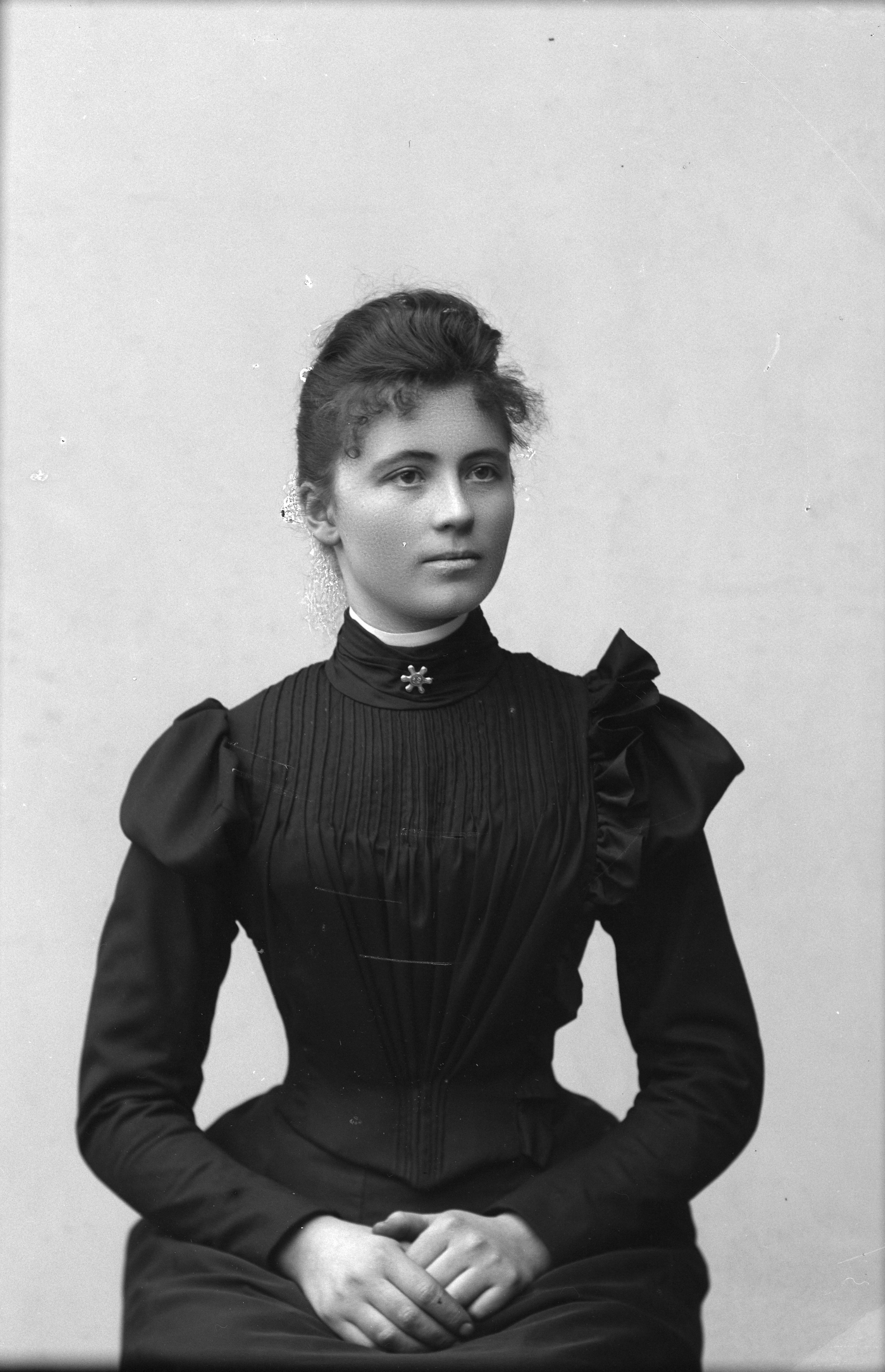 Beskrivning: Porträtt i halvfigur av Ida Olsson.