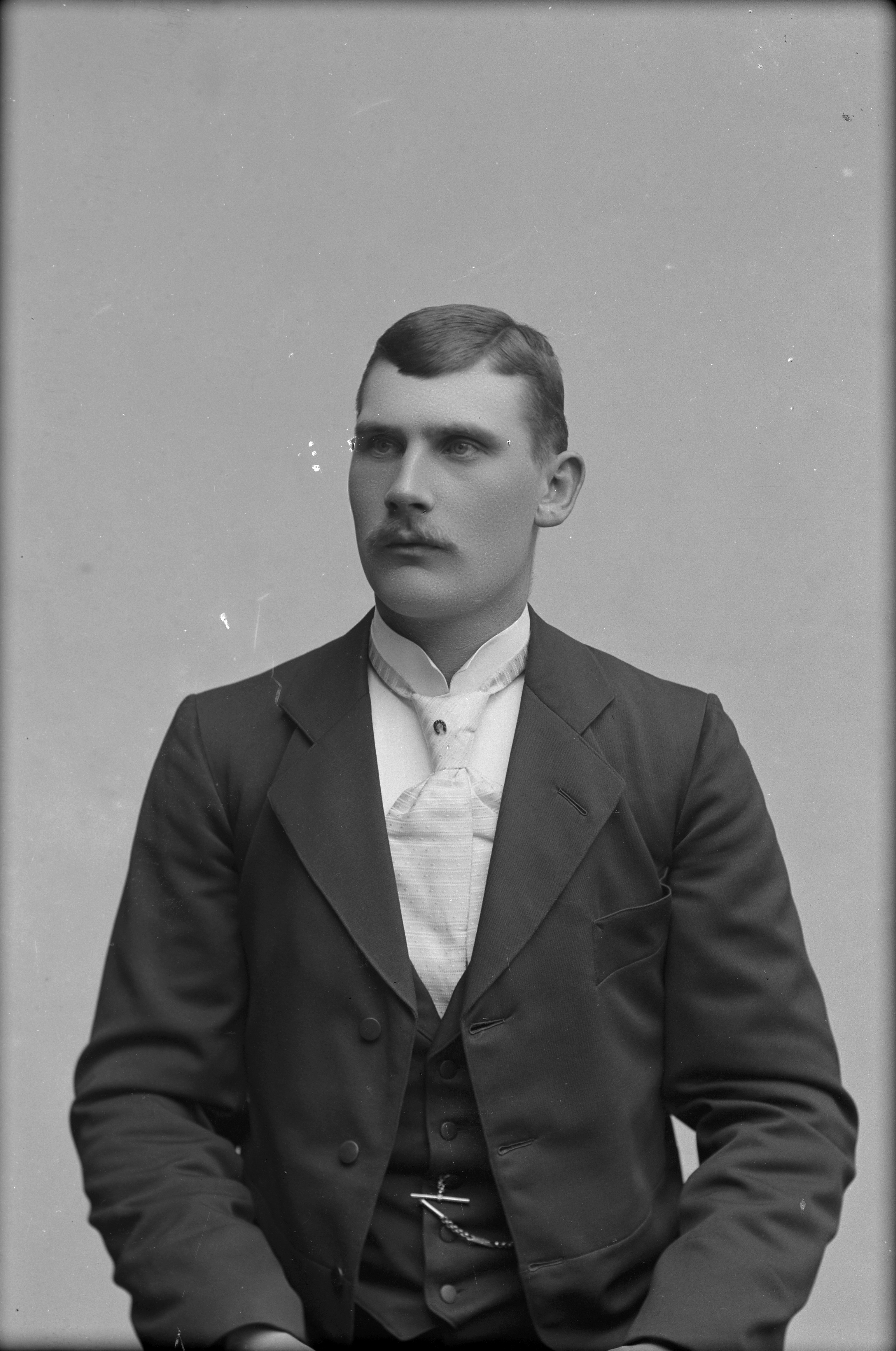 Beskrivning: Porträtt i halvfigur av C. A. Carlsson.