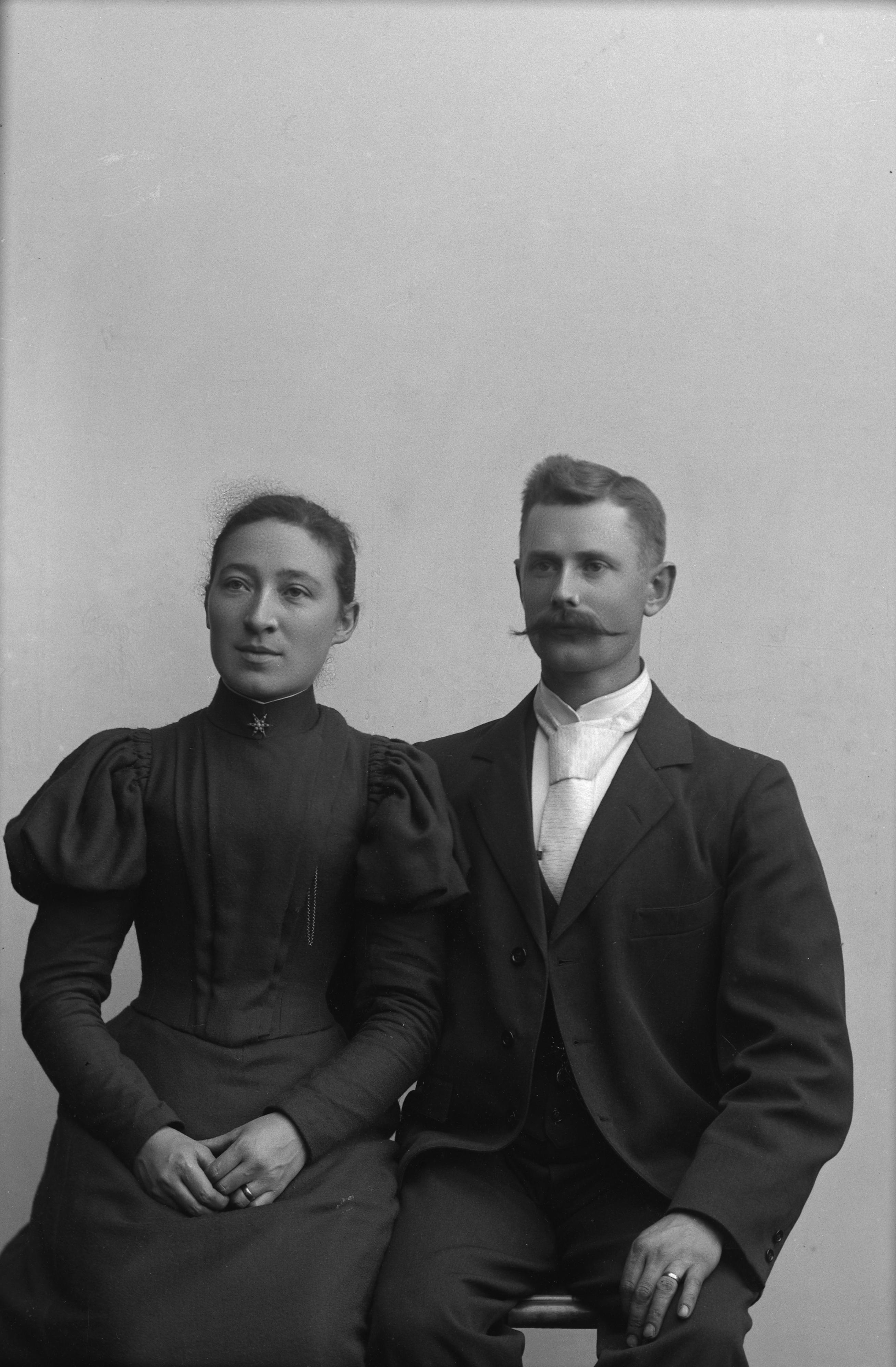 Beskrivning: Porträtt i helfigur av herr Bengtsson med fru.