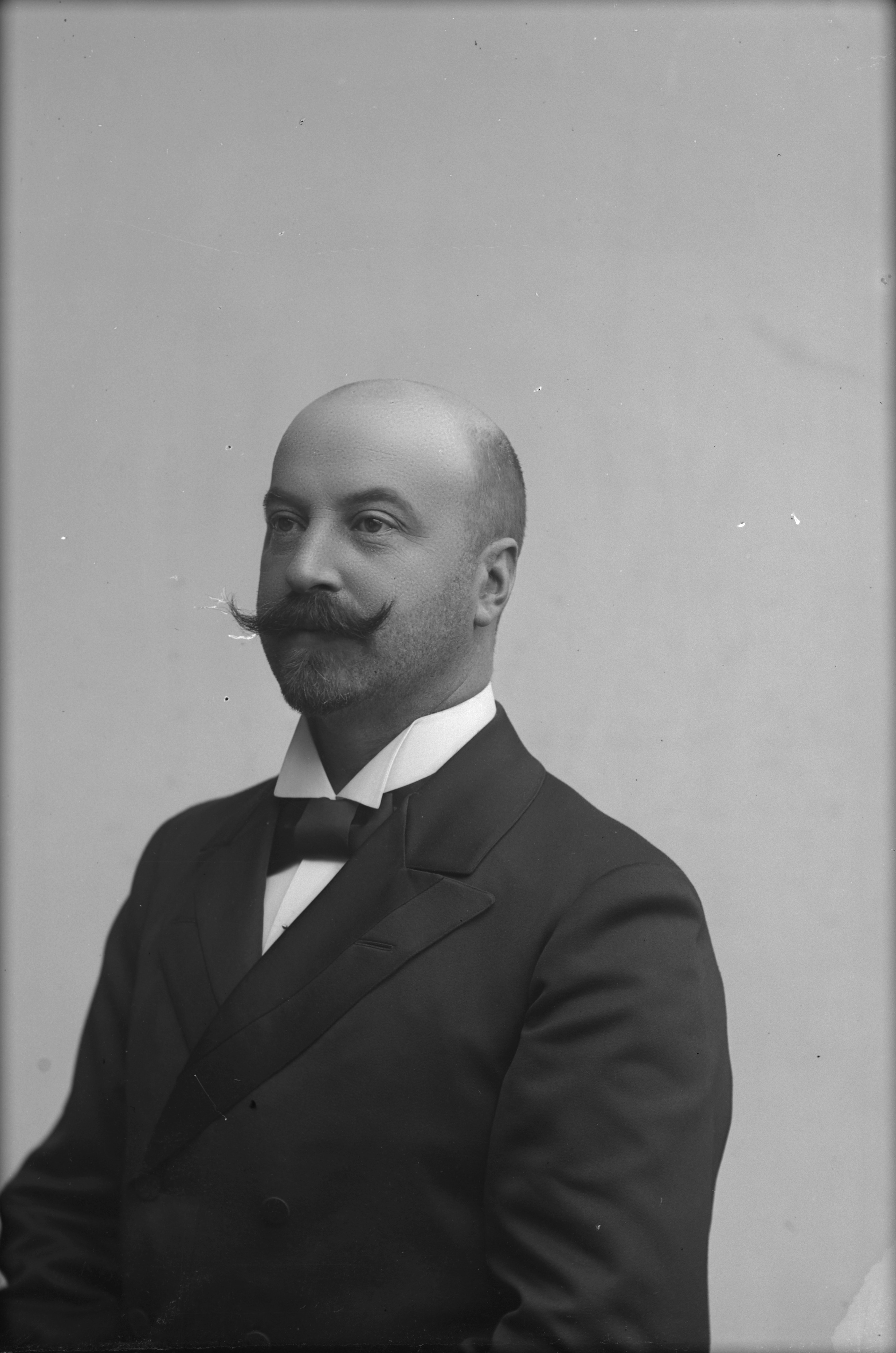 Beskrivning: Porträtt i halvfigur av handelsmannen Oscar Morange.