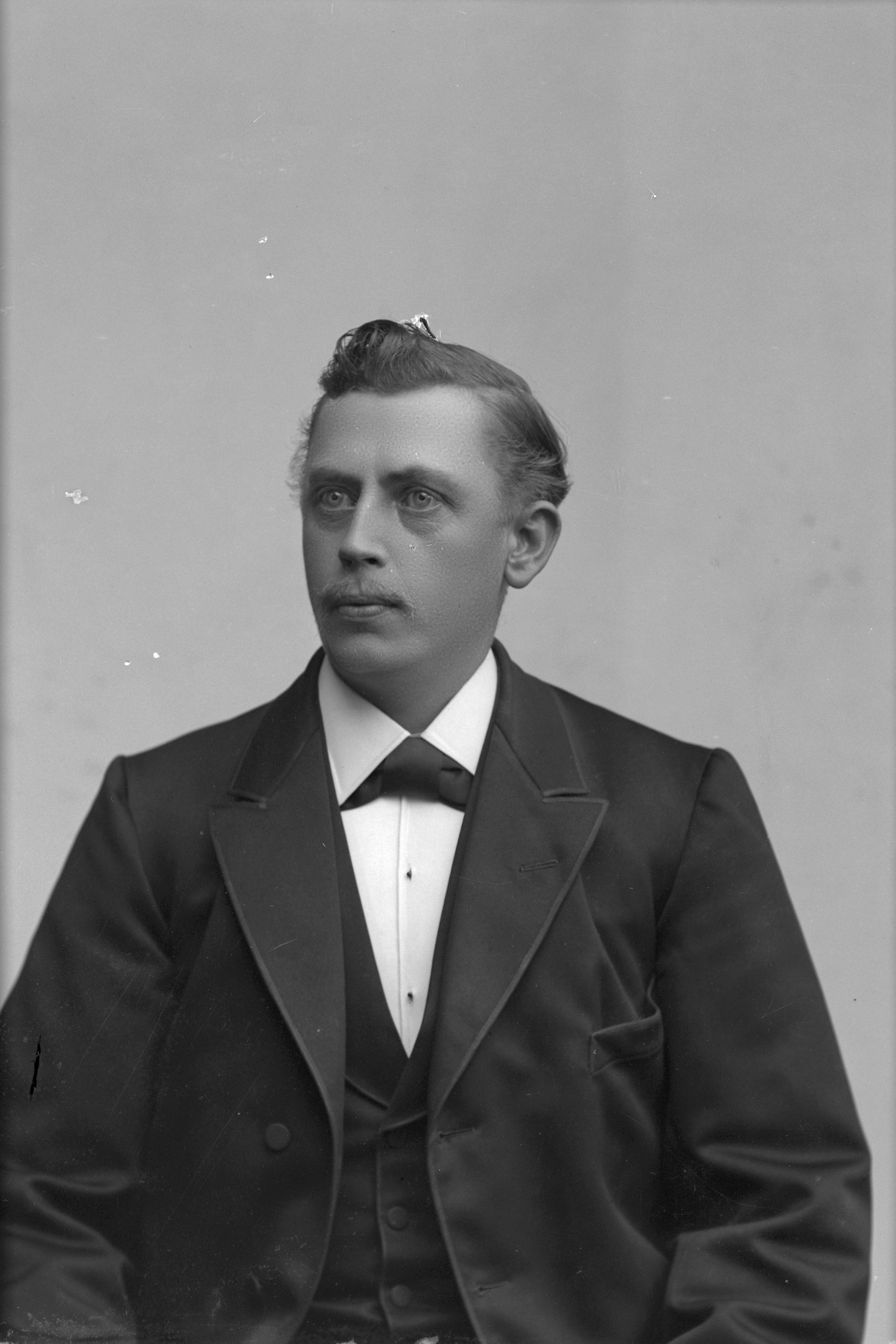 Beskrivning: Porträtt i halvfigur av folkskollärare Olof Pålsson Lückander.