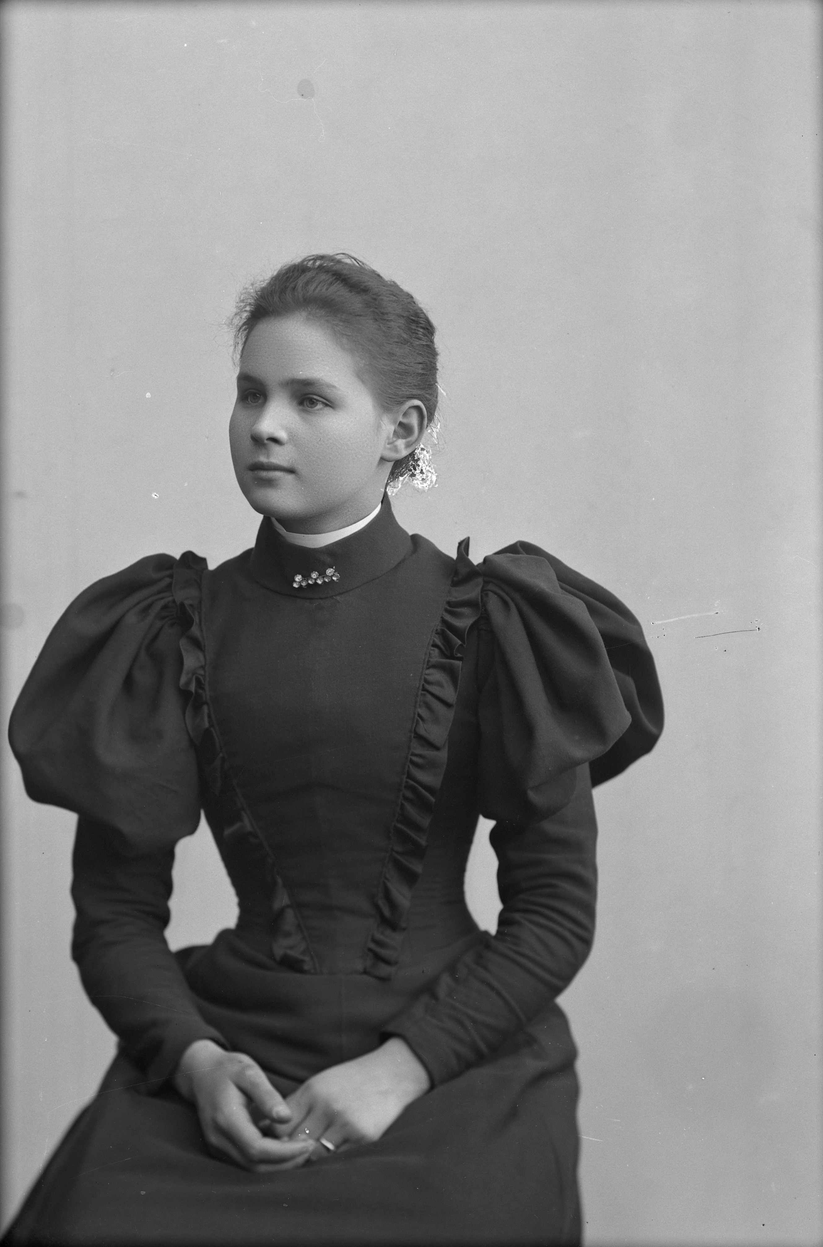 Beskrivning: Porträtt i halvfigur av Agda Nilsson.