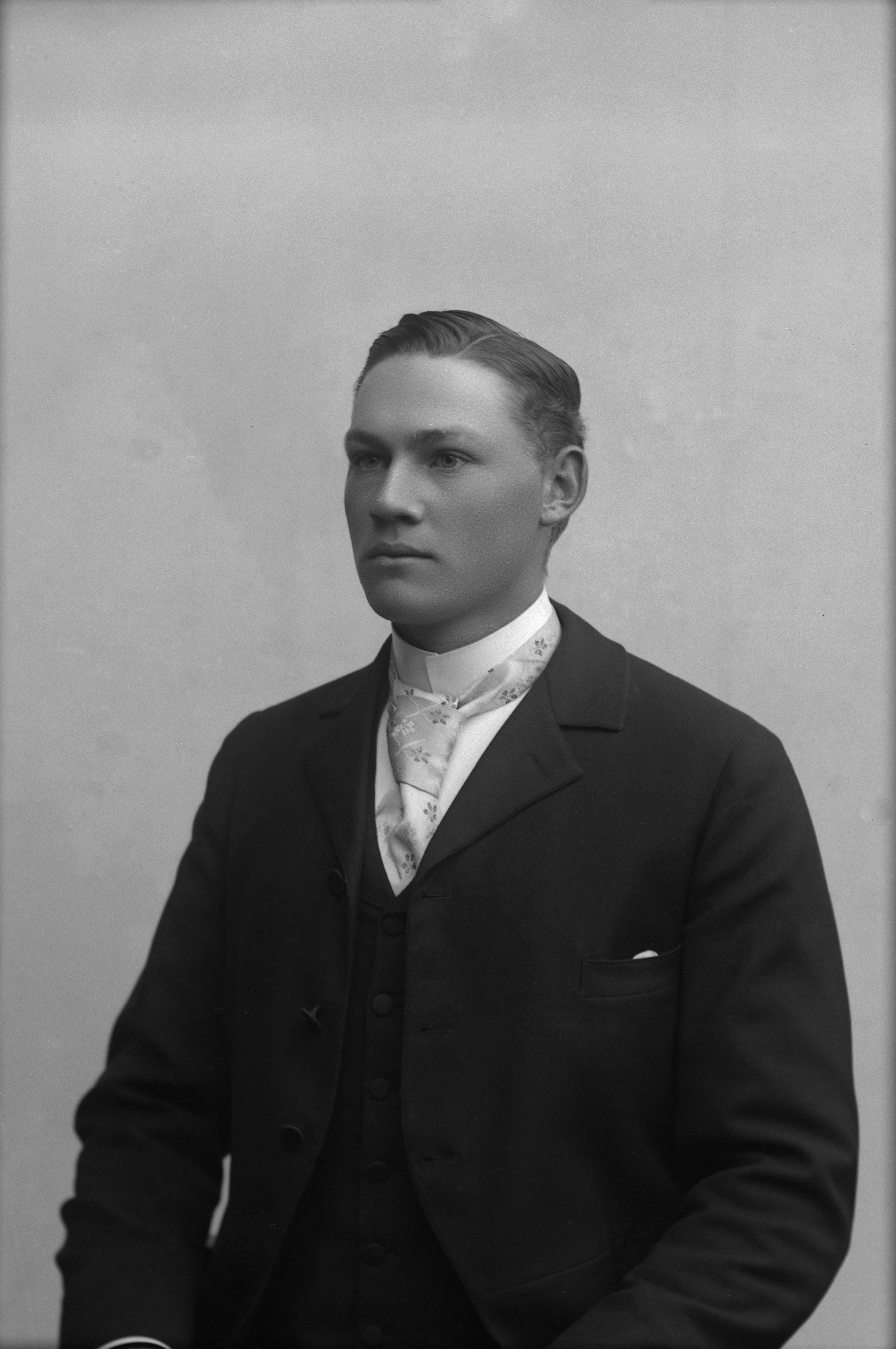 Beskrivning: Porträtt i halvfigur av Birger Rudenberg.