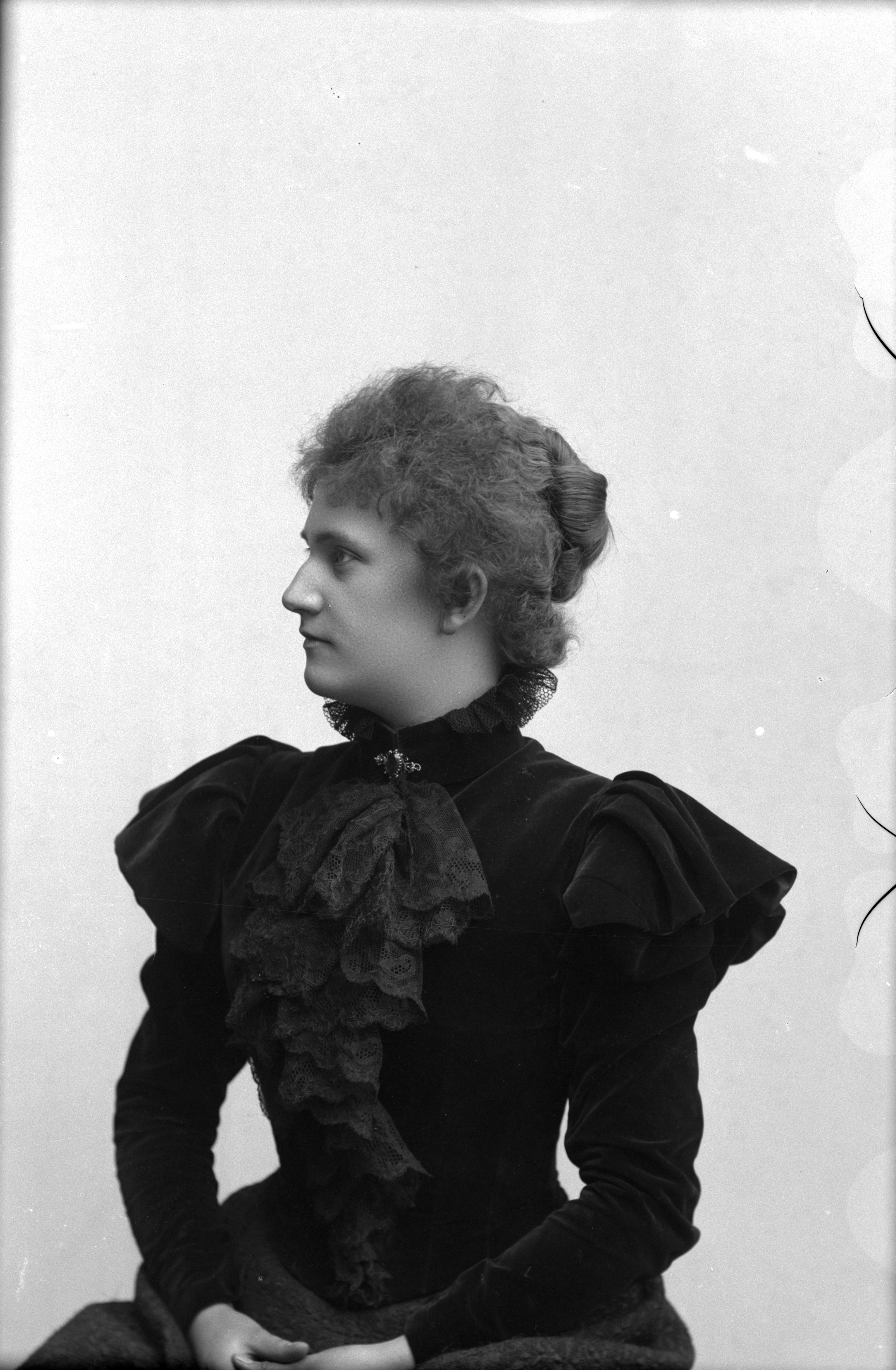 Porträtt i halvfigur av Gerda Sandahl, ansikte i profil.