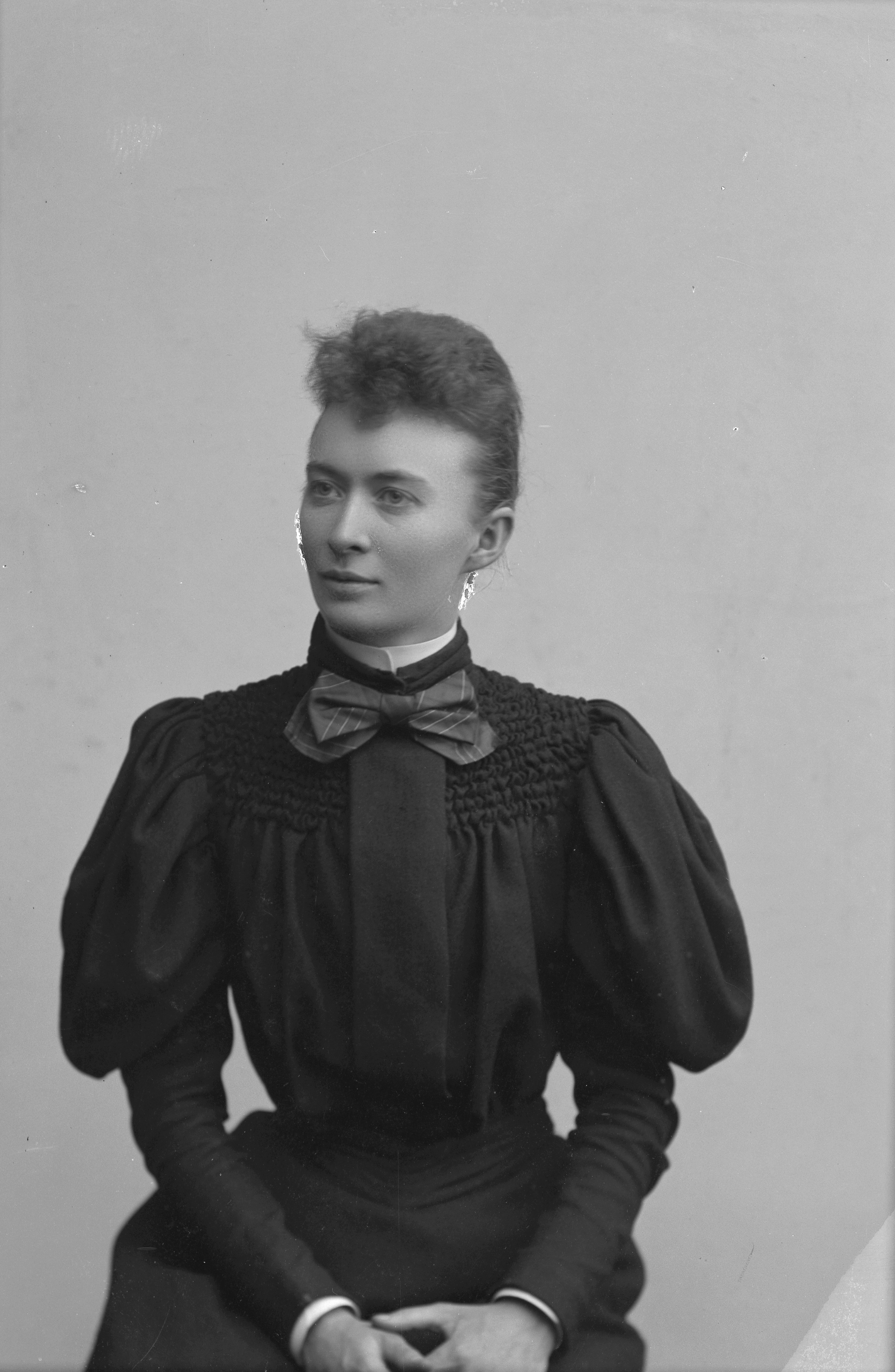 Porträtt i halvfigur av Hanna Pegelow, organist, sedermera sjuksköterska.