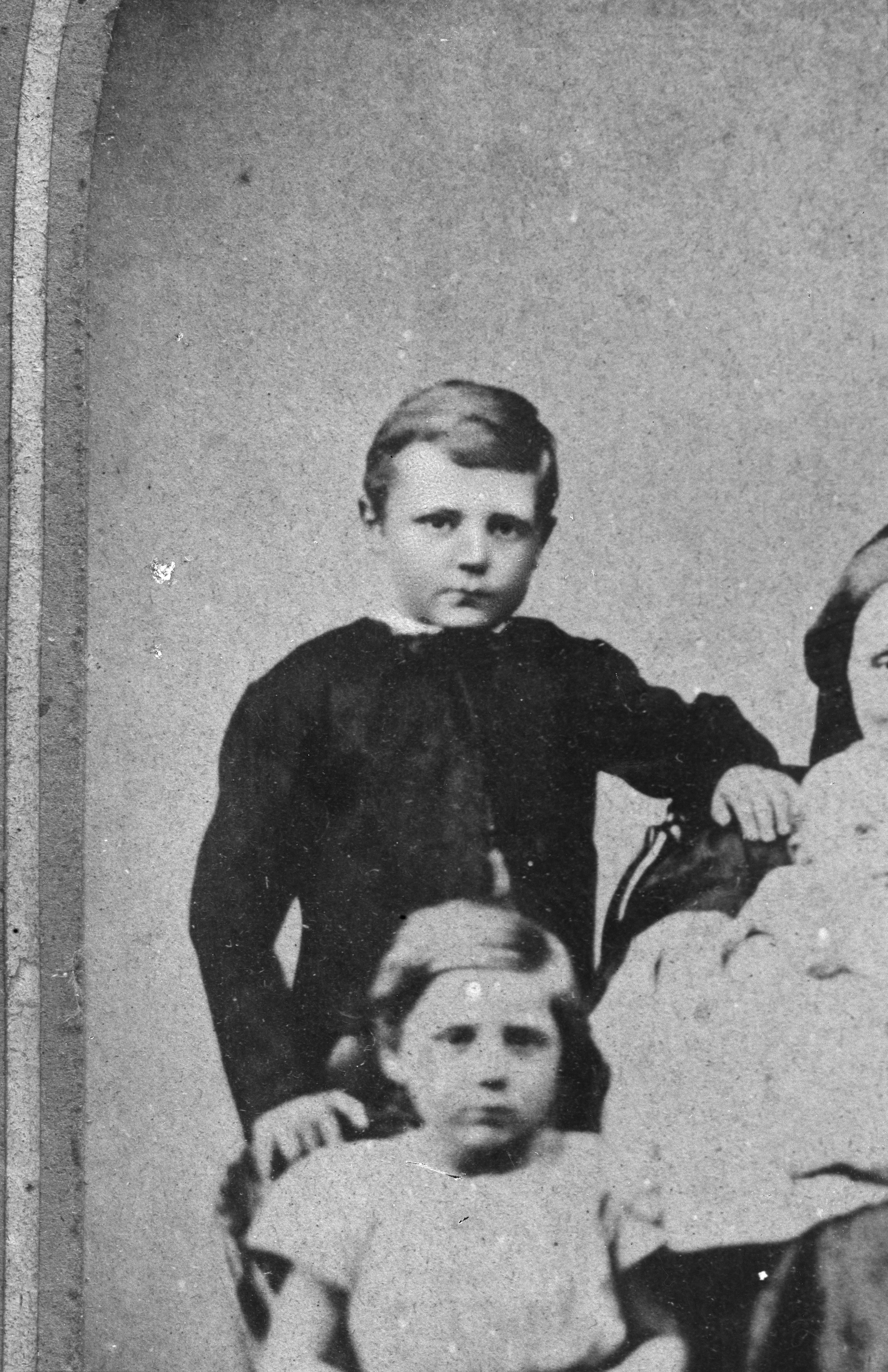 Beskrivning: Porträtt i helfigur av oidentifierade barn. Retuscherat grupporträtt.