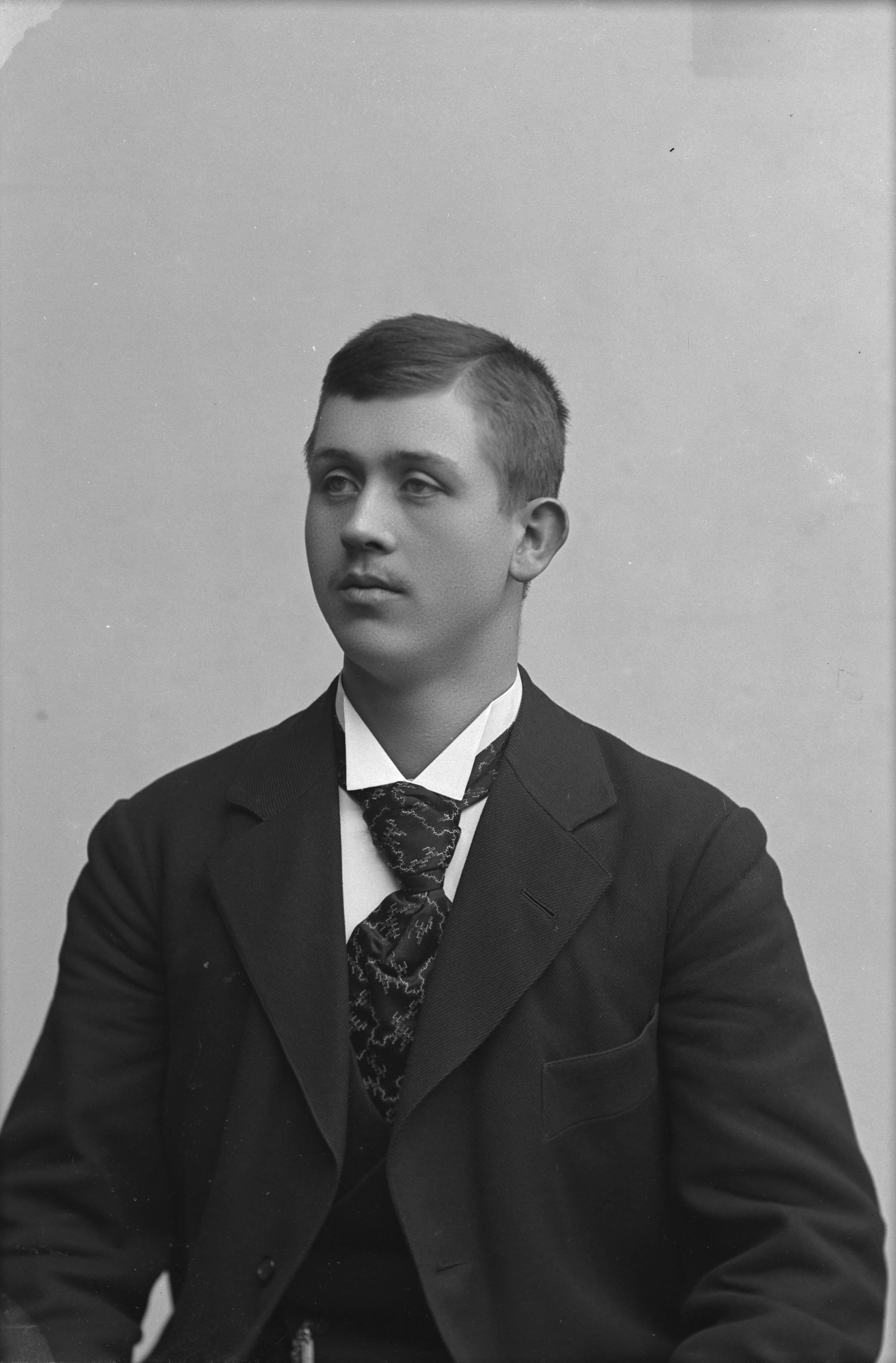 Porträtt i halvfigur av studerande Karl Tidström, sedermera läroverksadjunkt.