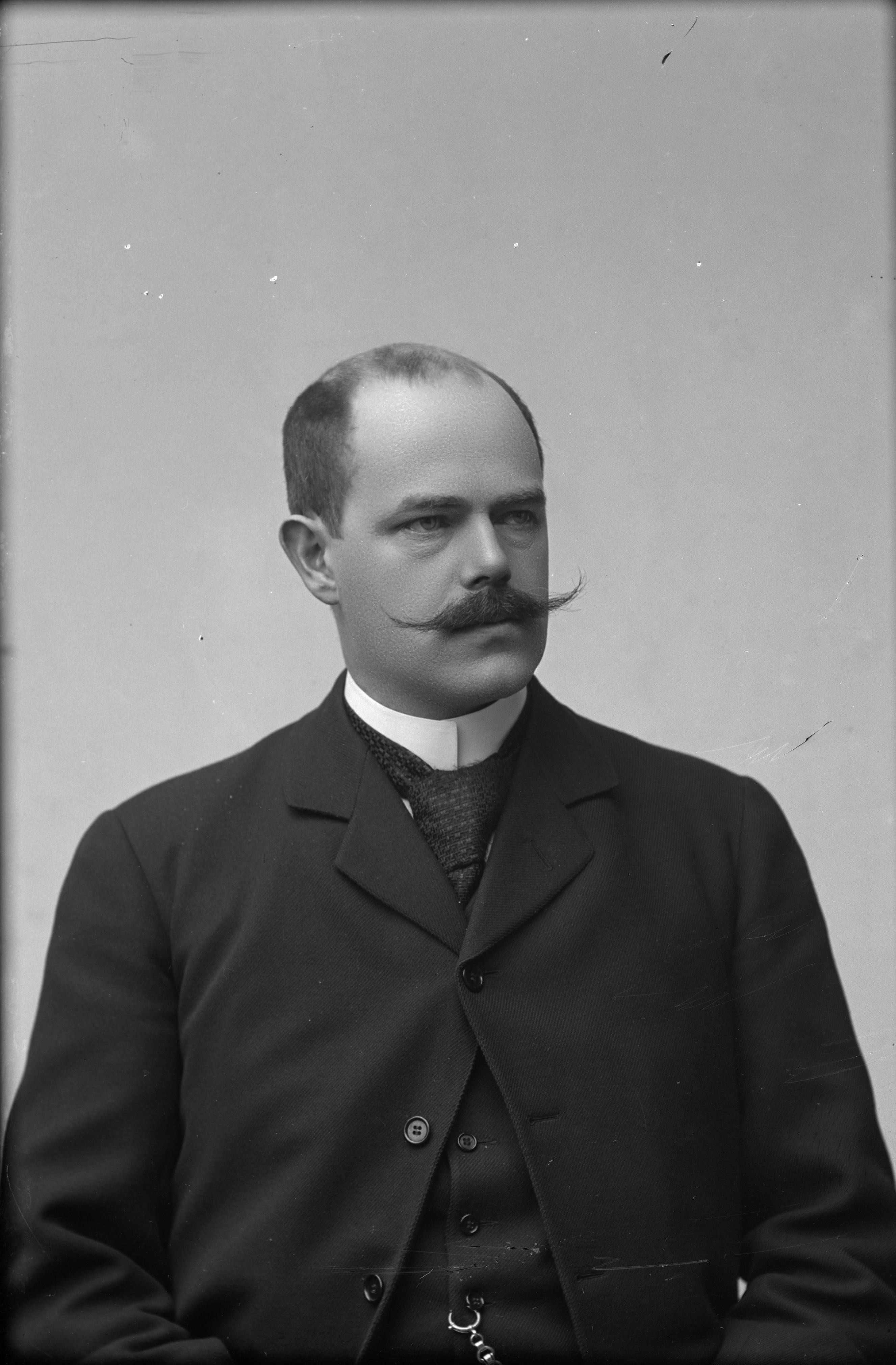 Beskrivning: Porträtt i halvfigur av telegrafkommissarie Karl Wikblad.