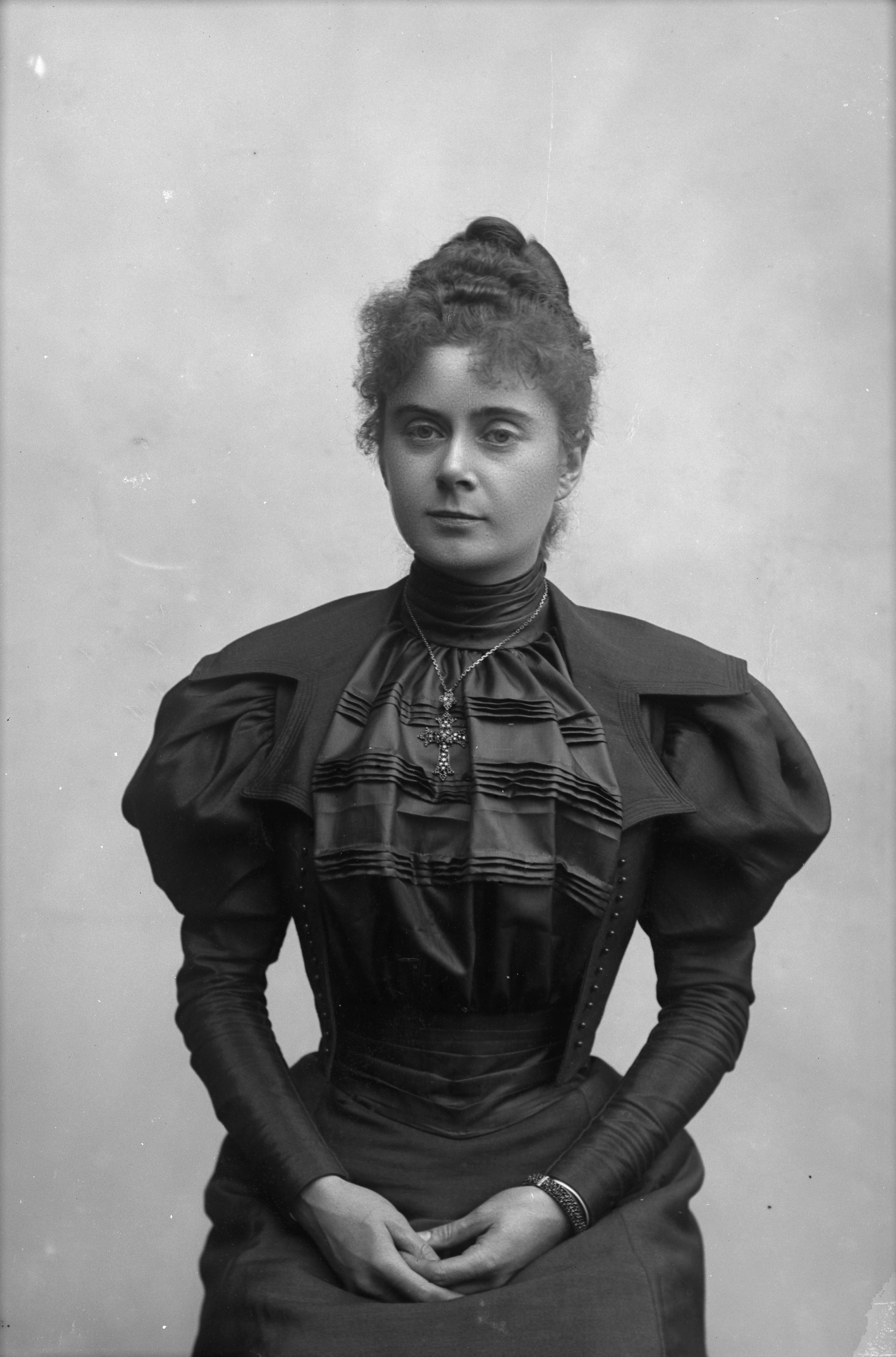 Porträtt i halvfigur av Agnes Nikolai, dotter till den tyske snickaren August Nikolai (1825-1900).