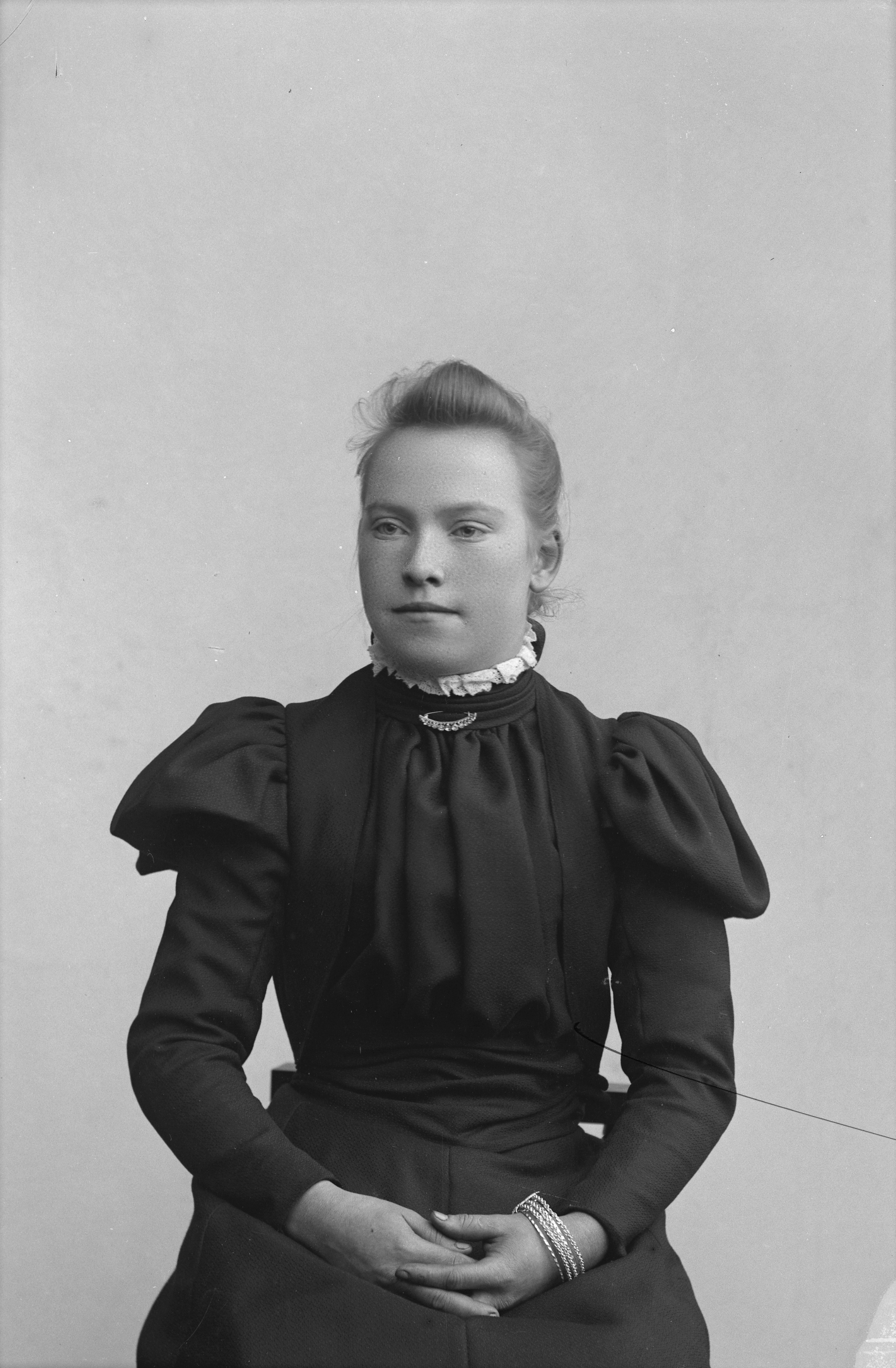 Beskrivning: Porträtt i halvfigur av Nanny Gustafsson.
