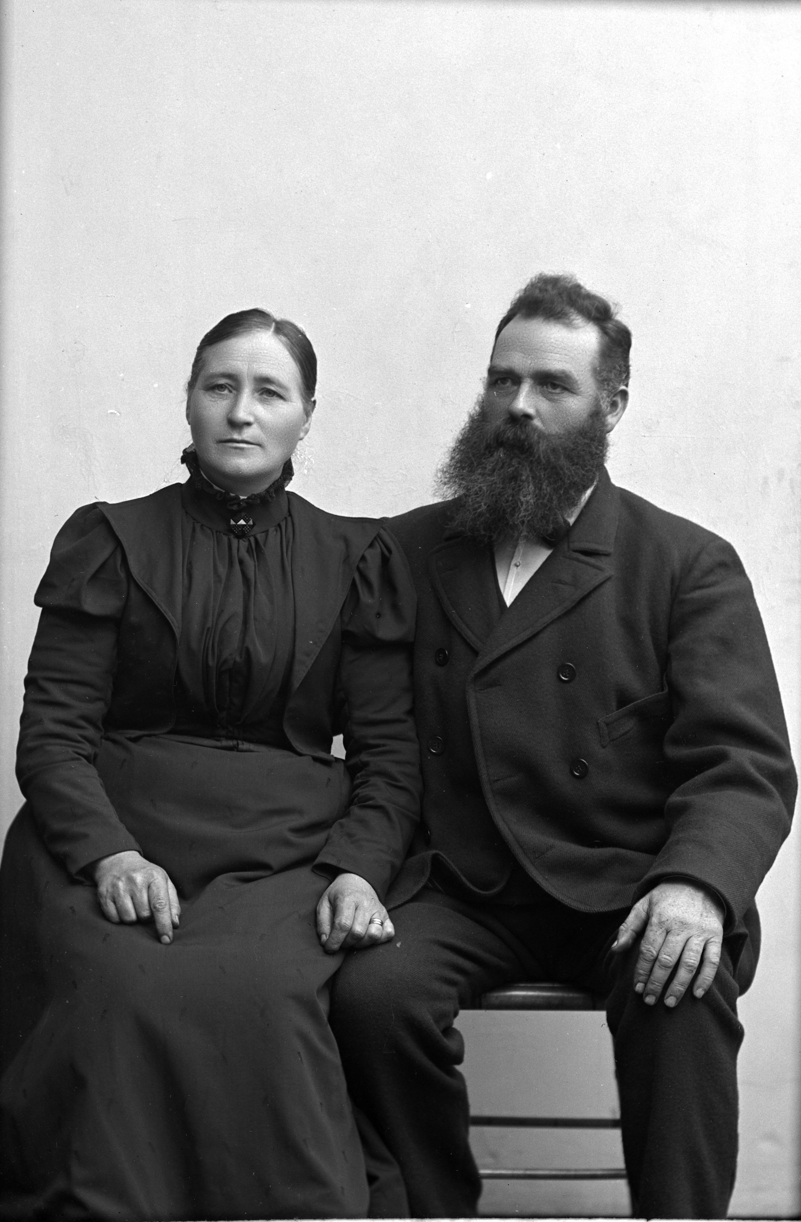 Beskrivning: Porträtt i helfigur av lotsen Jakob Larsson Lindman med frun Charlotta Elisabeth.