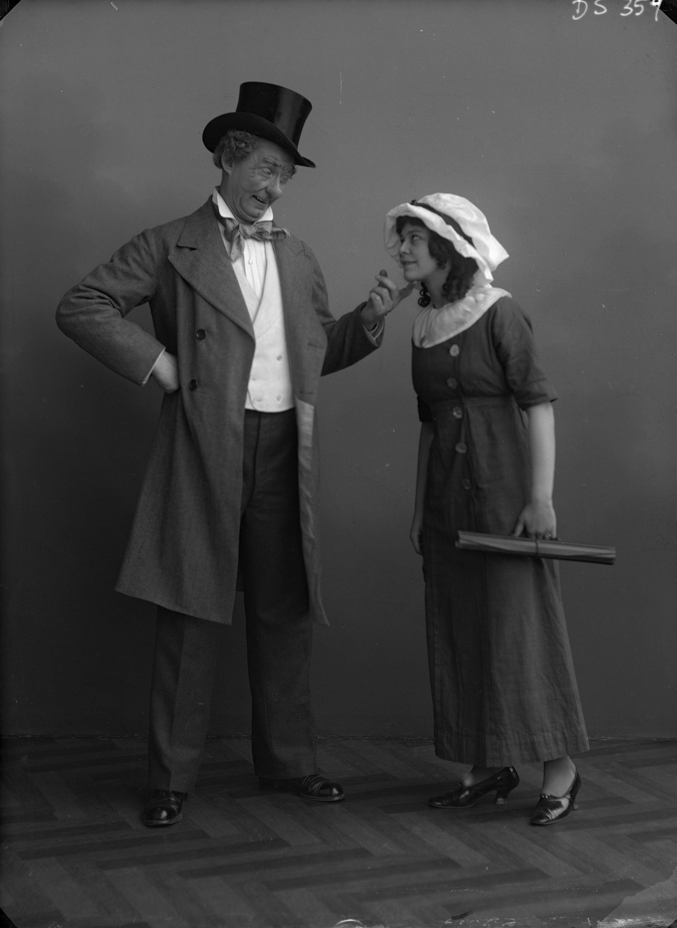 Porträtt i helfigur av medlemmar ur Lianders teatersällskap, "Liander-Norin".