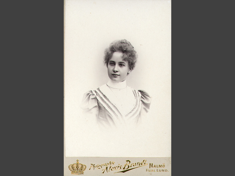 Beskrivning: Visitkortsfotografi. Porträtt av Alma Sterregaard.