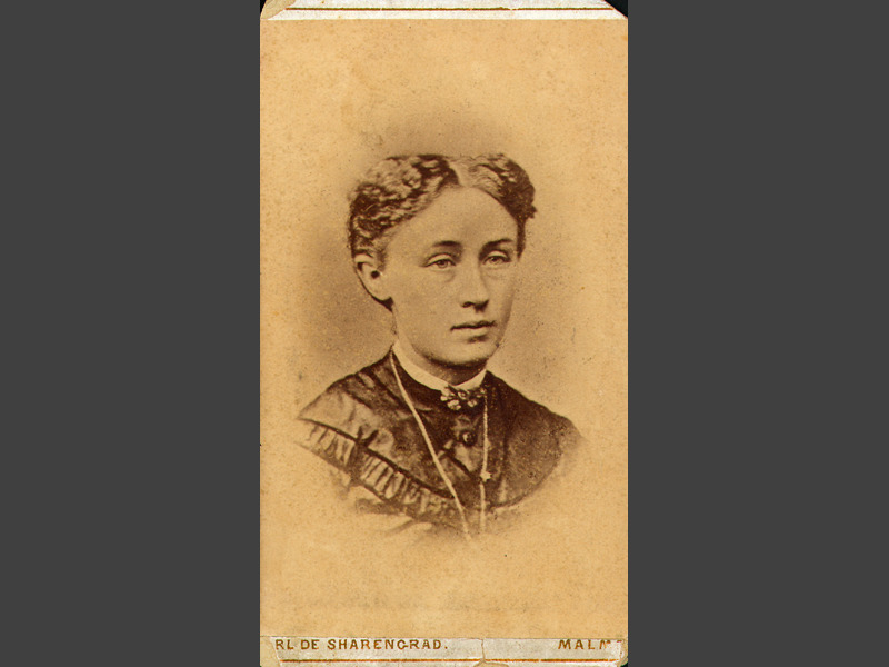 Beskrivning: Visitkortsfotografi. Porträtt av Mathilda Sterregaard.