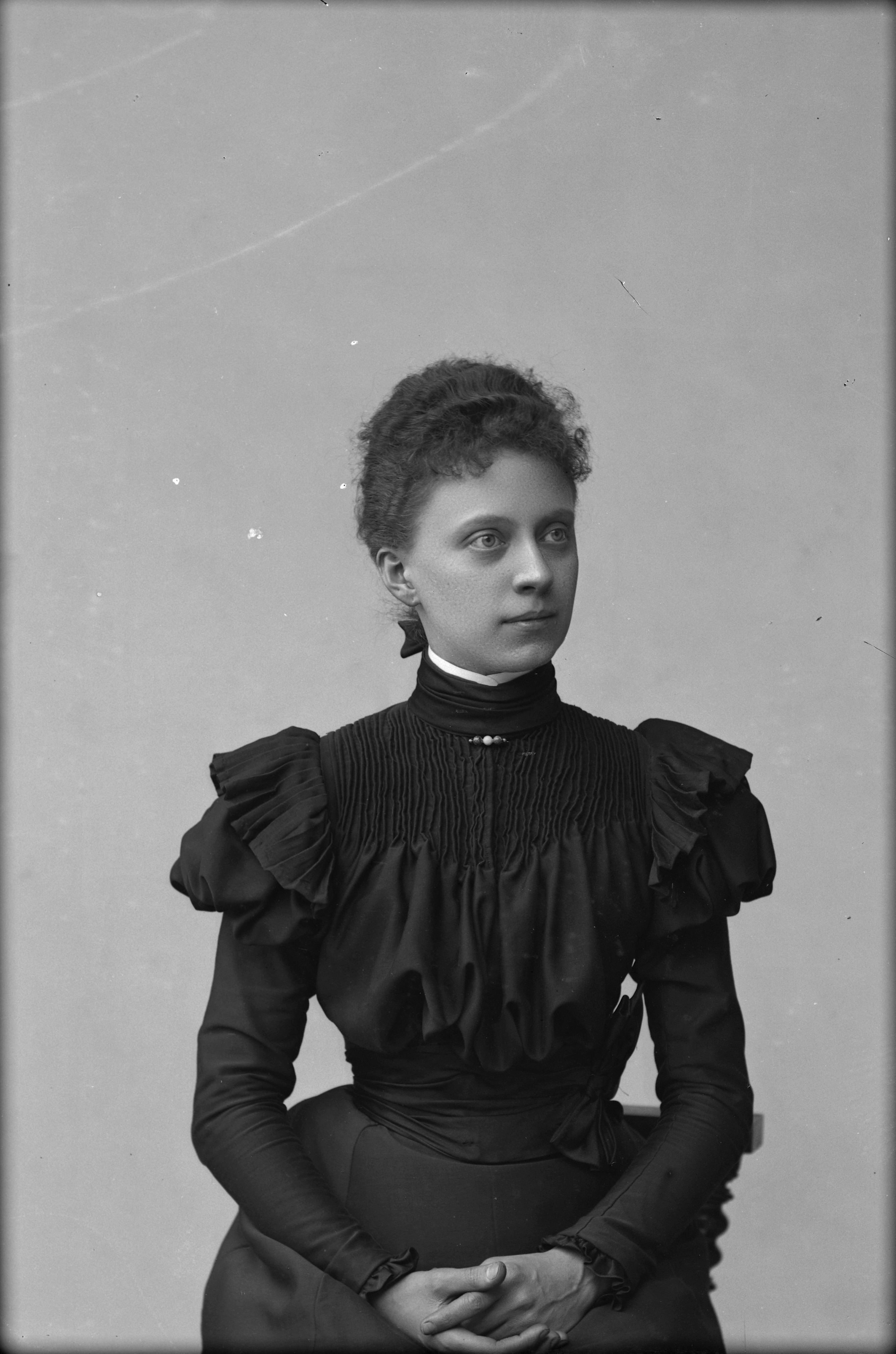Beskrivning: Porträtt i halvfigur av Anna Lindeström.