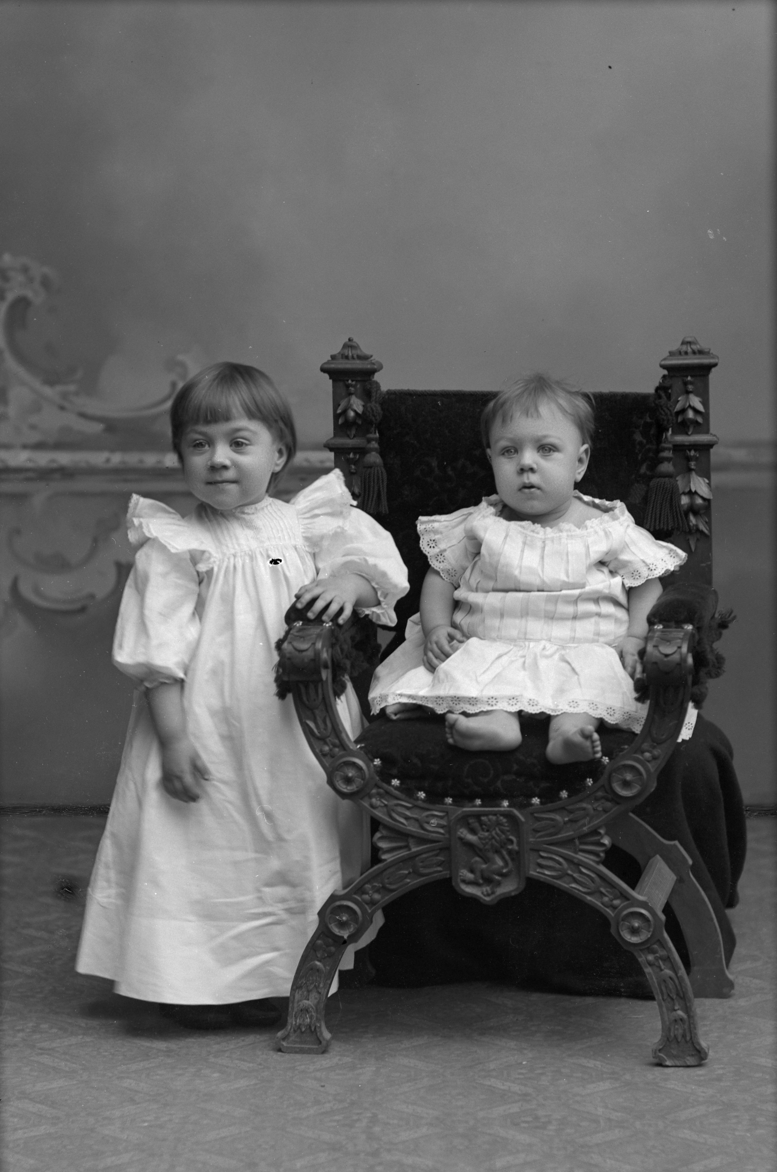 Porträtt i helfigur av Velinders döttrar, den yngsta sittande i stol.