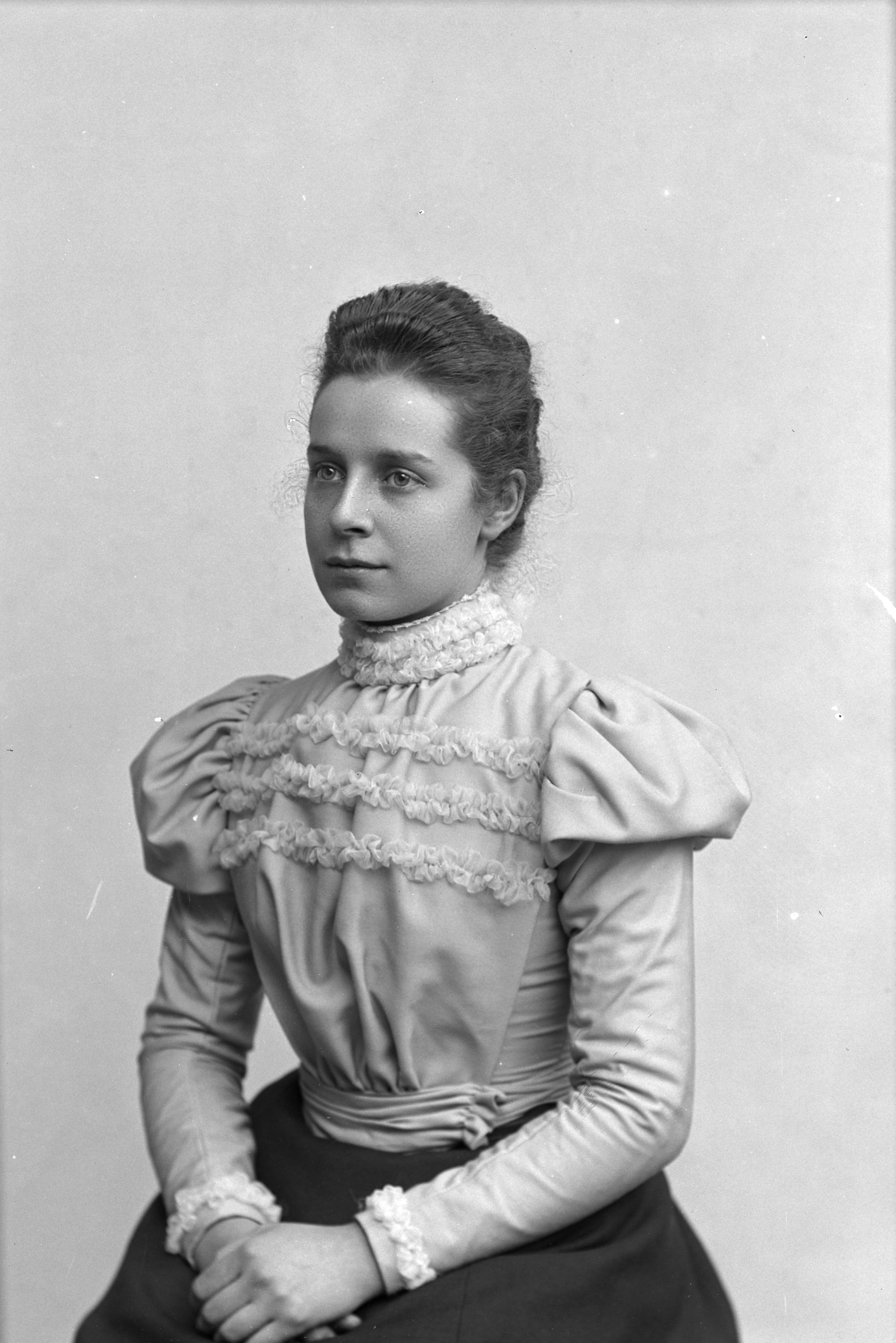 Beskrivning: Porträtt i halvfigur av Sophie eller Louise Annerstedt.
