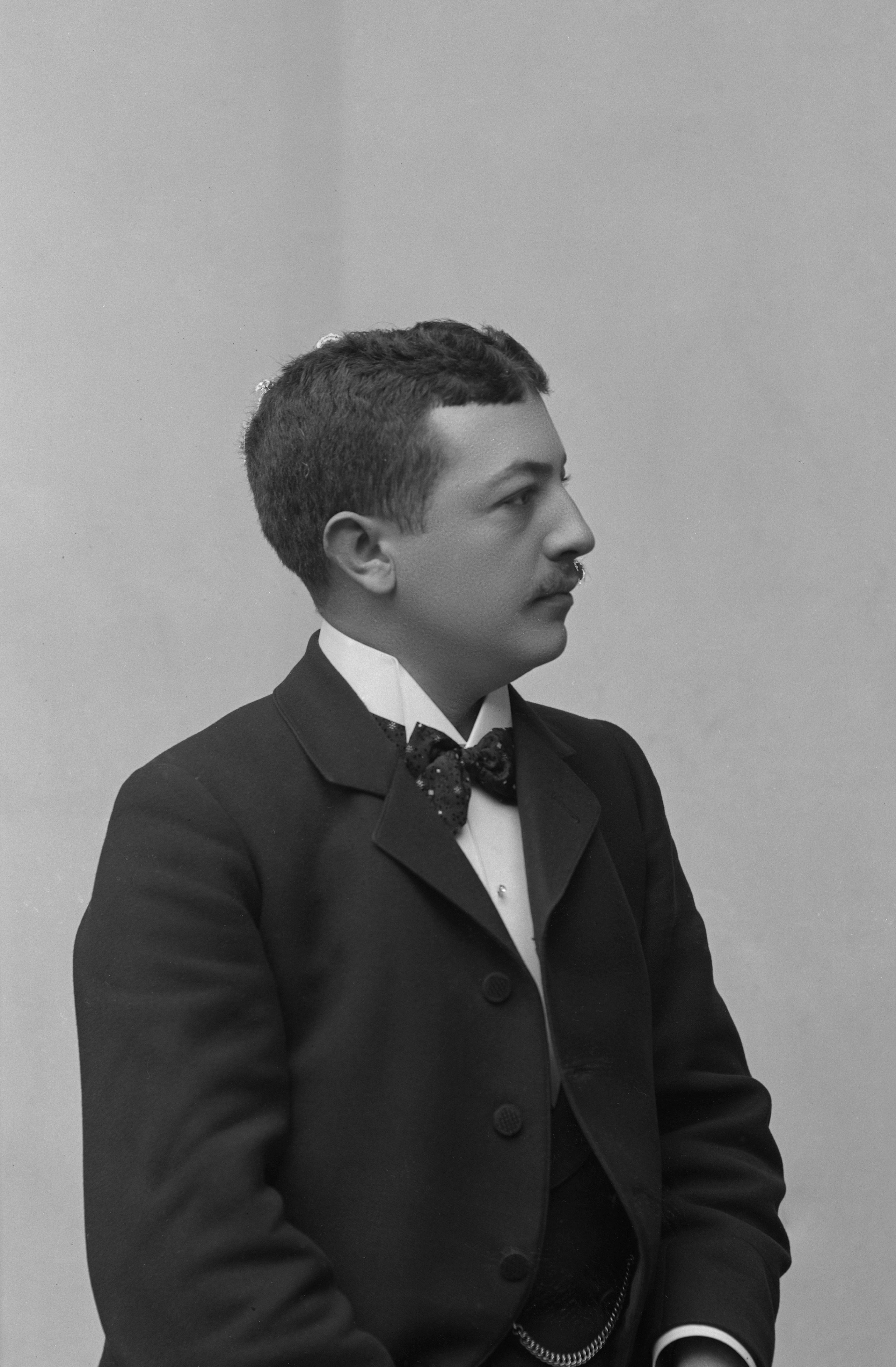 Porträtt i halvfigur av grosshandlare Fritz Klein, ansikte i profil.