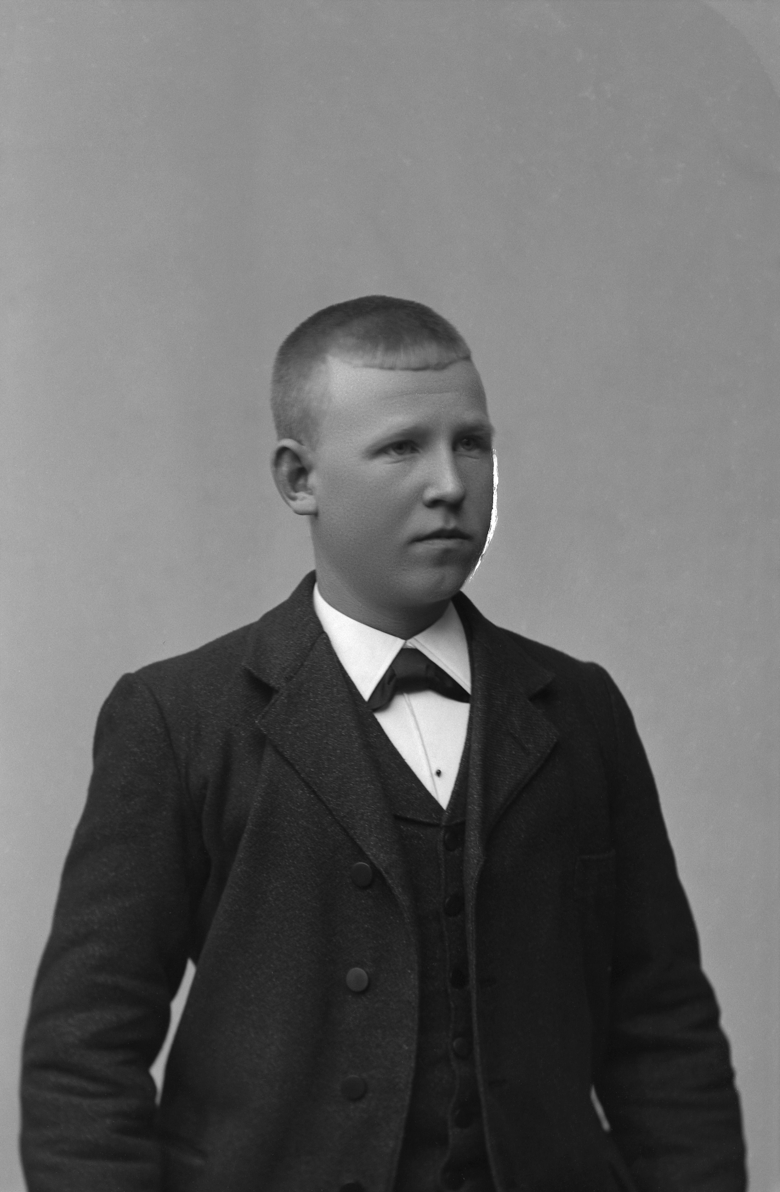 Beskrivning: Porträtt i halvfigur av Carl Holmquist.